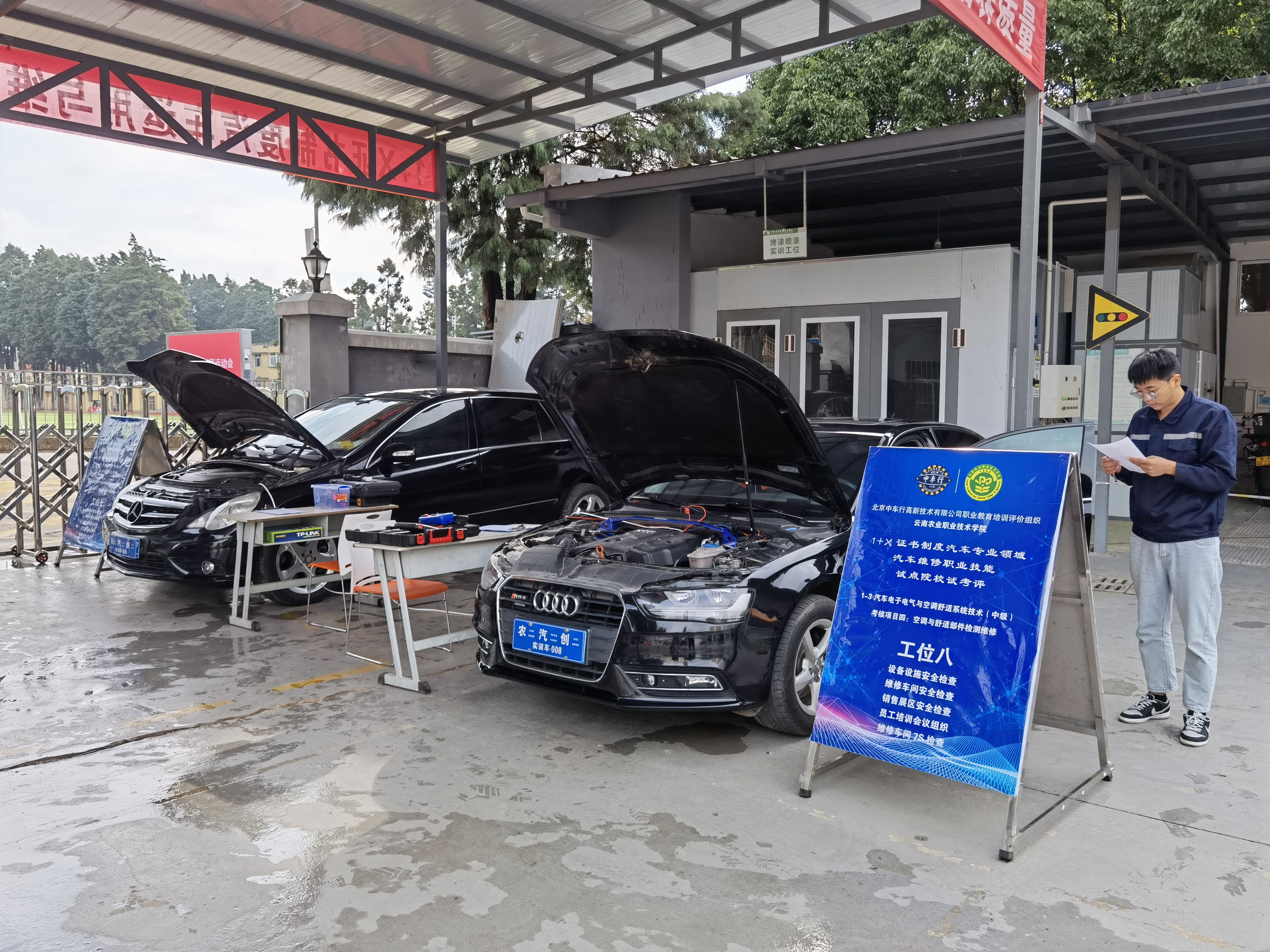 根据教育部第三方职业教育培训评价组织北京中车行高新技术有限公司下发的《汽车运用与维修(含智能新能源汽车)1+X证书制度职业技能等级标准》、《汽车专业领域汽车运用与维修职业技能等级证书汽车运用与维修职业技能考核【中级】培训计划准则》等标准和文件要求,本次考评我院设置了一名督导员、四名考评员、布置了八个工位,并对每个工位进行全程摄像取证。经过前期全面的培训以及学生刻苦的训练,考核过程中,同学们冷静思考,熟练操作,考评专家客观公正,严谨认真,参考考生按质按量完成了所有考核项目。