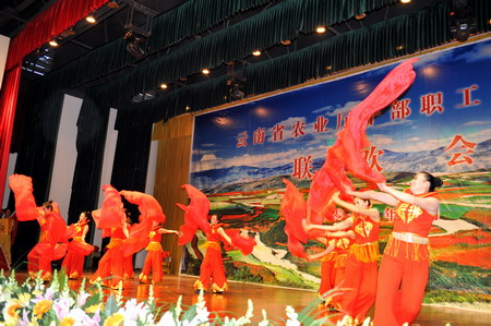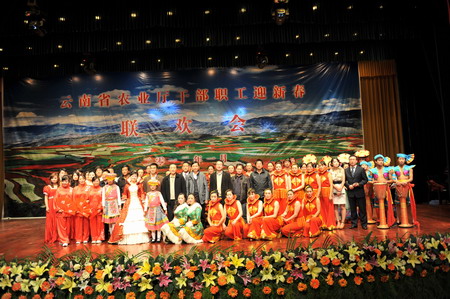 下午3:00,在茭菱校区大礼堂举行农业厅职工文艺汇演。党委书记崔金赋、院长彭志远陪同省农业厅张玉明厅长、张智泽副厅长、寸强副厅长等厅领导兴致勃勃地观看了农业厅直属单位职工的精彩演出。我院由党委宣传部负责演出节目的选定和排练,由卢雪梅老师的独唱和组织职工孩子的舞蹈两个节目参加了汇演;夏体韬老师和张沁老师担任此次文艺表演的节目主持。演出得到农业厅领导和职工的一致好评。