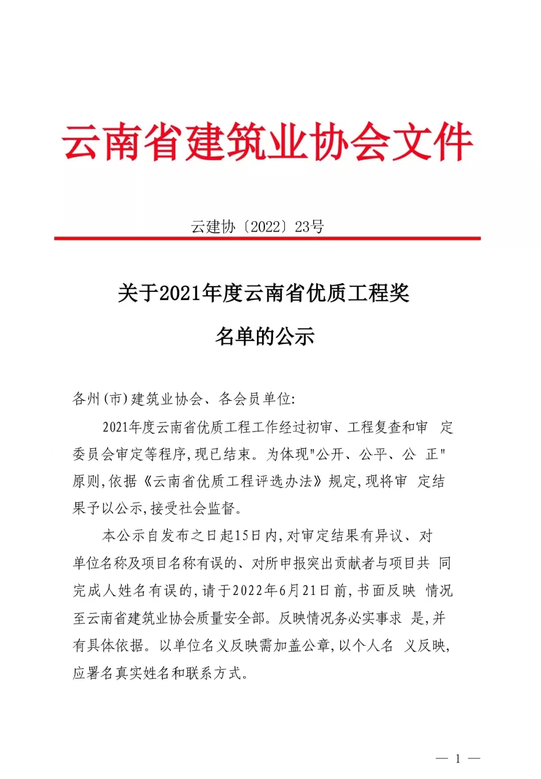通知中心近日,云南省建筑业协会公布了“2021年度云南省优质工程奖”名单, “best365中国官方网站排危与新建项目”荣获二等奖。
