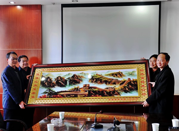 2013年11月15日石屏县异龙镇人民政府李渊副镇长带队一行5人,专程到学院赠送感谢匾。学院领导对此项工作十分重视,下午专门召开接匾仪式。学院领导俞浩副院长,生物工程系王孟宇主任、党总支书记许邦丽、副主任兼党总支副书记李一源,以及赖丽芳老师、桑庆刚老师,党院办夏体韬老师参加了接匾仪式。