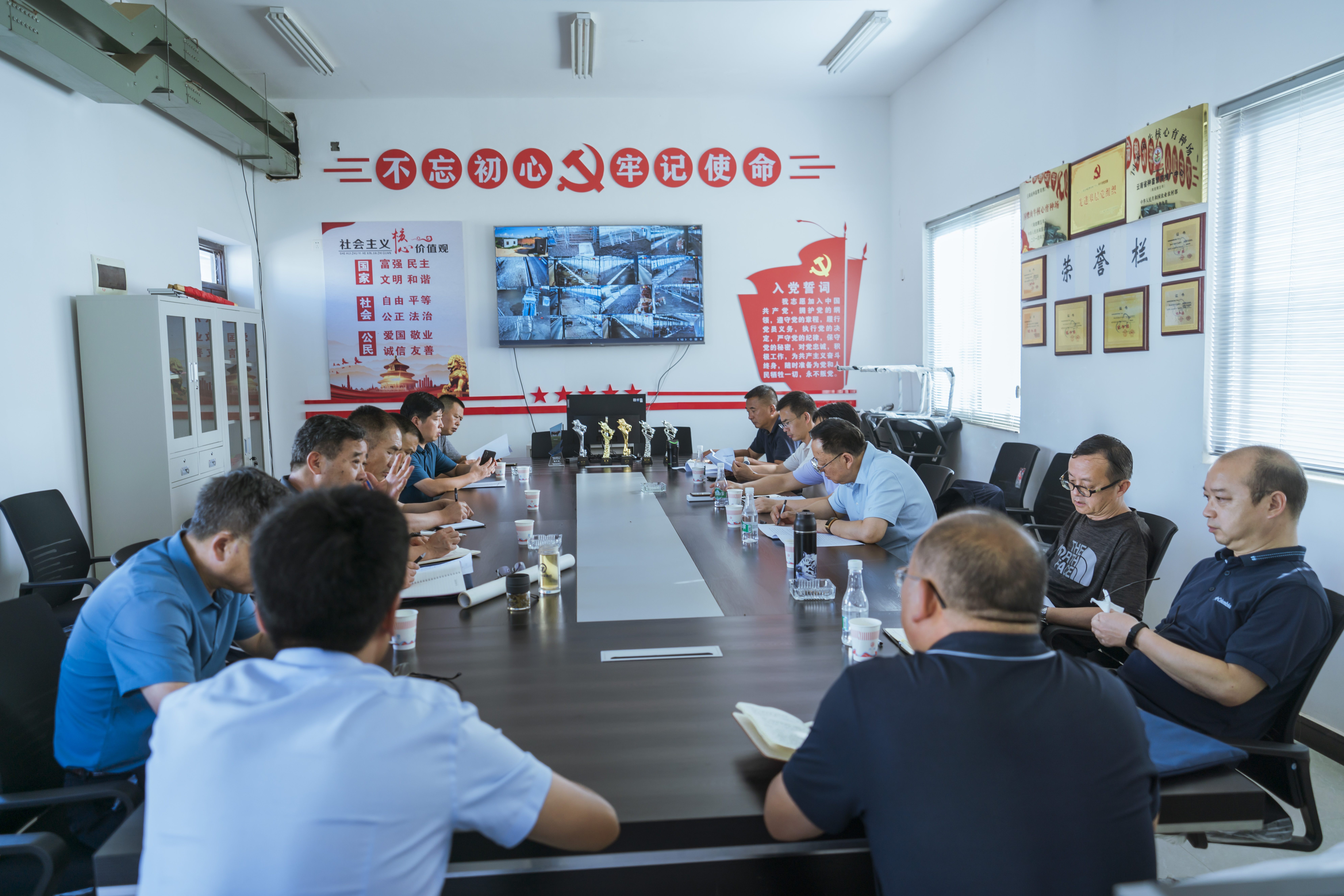 调研组一行实地查看马龙基地存在的安全隐患,了解马龙基地种牛场的安全生产情况。随后在种牛场会议室召开专题会议,专题研究马龙基地安全维稳工作。会议听取了关于马龙基地安全隐患排查情况的汇报。