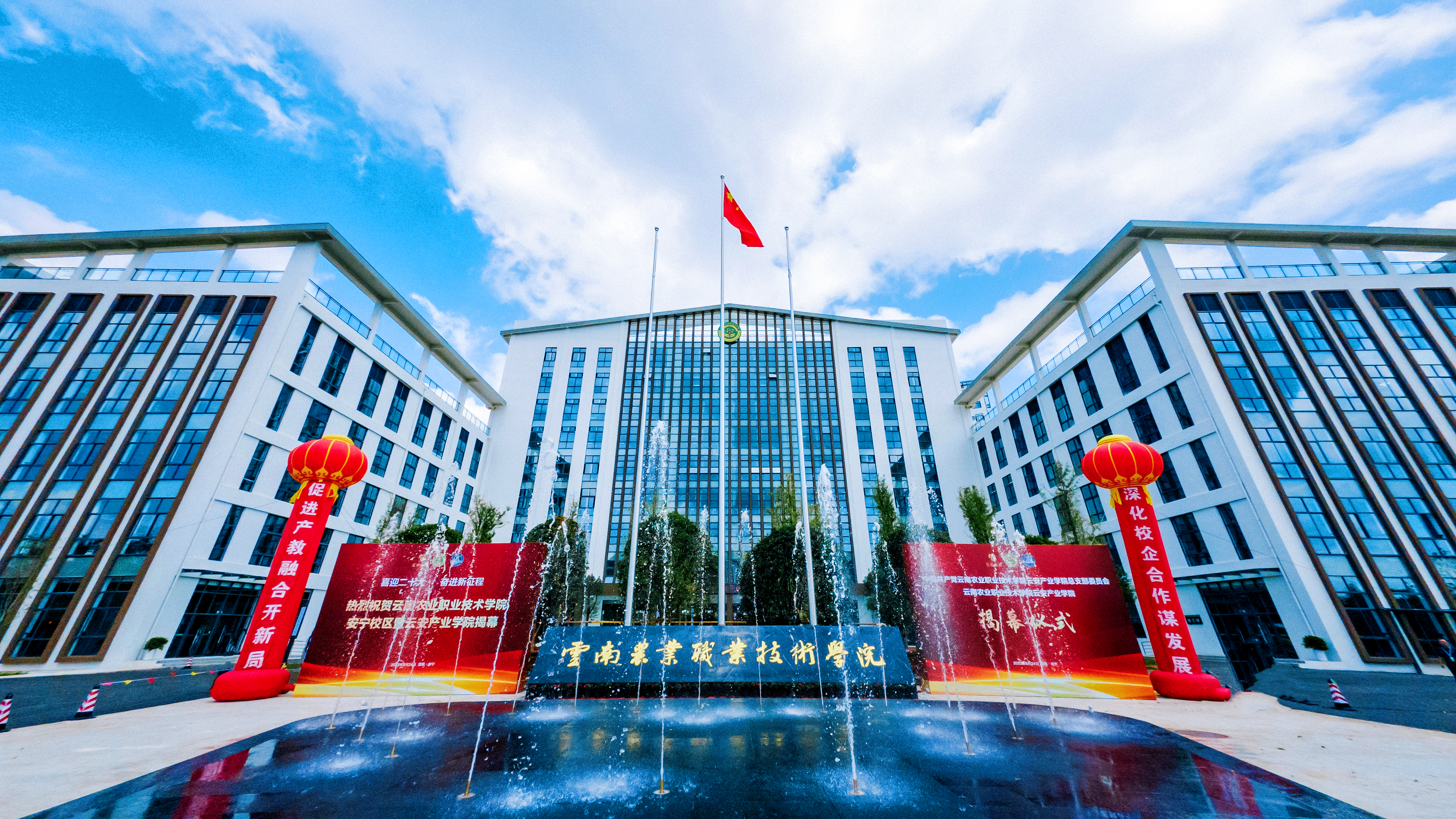 学院党委书记文俊、院长陈太安为“best365中国官方网站”校名揭幕;学院党委副书记伍学龙、纪委书记冯志宏为云安产业学院党总支部揭牌;学院院长陈太安、安宁市副市长李琦、云南云安投资集团董事长苏国辉、云南南方教育投资集团董事长兰靖共同为云安产业学院揭牌。安宁市金方街道办事处有关负责人、云南云安投资集团总经理李艾奚、云南云安建筑公司总经理李永诚;学院党委委员、办公室(党委巡察办)主任夏体韬及学院有关职能部门负责人、合作企业代表和云安产业学院教职工参加揭牌仪式,共同见证学院安宁校区暨云安产业学院落成正式投入使用。