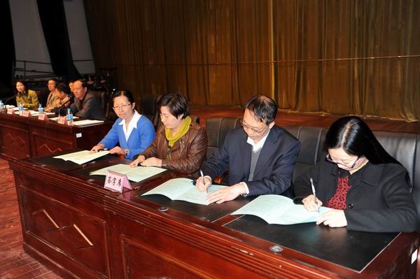 学院党委书记崔金赋、院长彭志远与教育厅签订2013就业工作责任书;党委书记崔金赋、院长彭志远与主管招生就业的俞浩副院长签订了学院2013就业工作责任书;俞浩副院长分别与招生就业处潘彦维处长,畜牧兽医系党总支书记钱林东、系主任赵跃,园艺与园林工程系党总支书记董文红、系主任唐世凯,生物工程系党总支书记许邦丽、系主任王孟宇,管理与信息工程系党总支书记黎红梅、系主任谭琳等签订了学院2013就业工作责任书。(党委宣传部 供稿)
