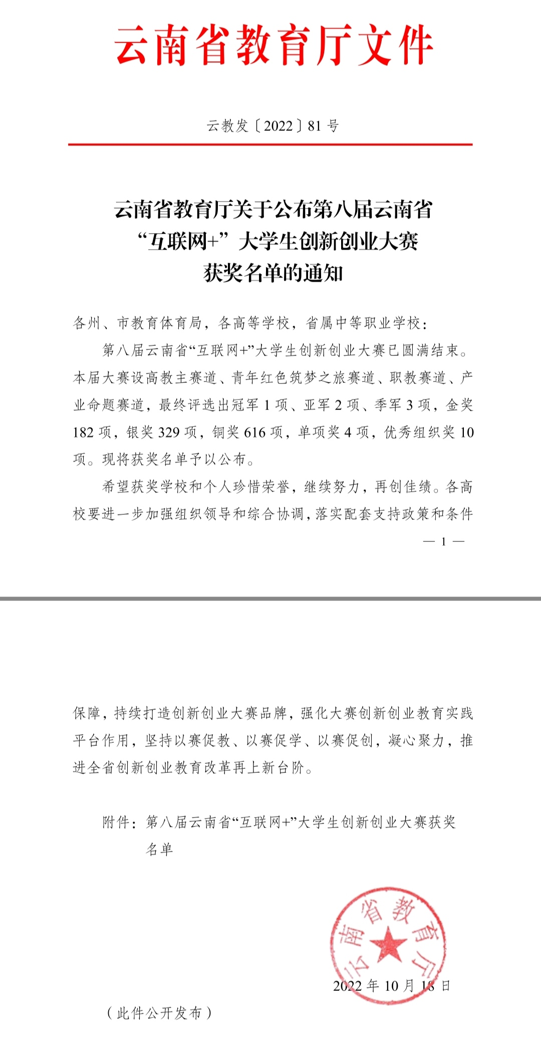 据悉,本届大赛设高教主赛道、青年红色筑梦之旅赛道、职教赛道、产业命题赛道,最终评选出冠军1项、亚军2项、季军3项,金奖182项,银奖329项,铜奖616项,单项奖4项,优秀组织奖10项。
