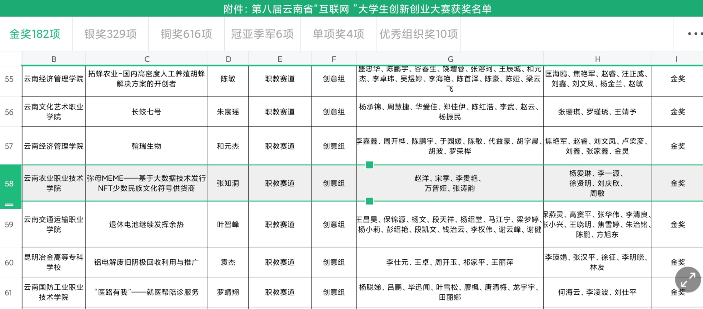 通知中心近日,云南省教育厅公布了第八届云南省“互联网+”大学生创新创业大赛的获奖名单。我院由杨爱琳老师负责,李一源、徐贤明、刘庆欣、周敏等老师指导,张知洞、赵洋、宋季、李贵艳、万普娅、张涛韵等同学的参赛作品“弥母MEME——基于大数据技术发行NFT少数民族文化符号供货商”,于教职通道创意组荣获金奖!