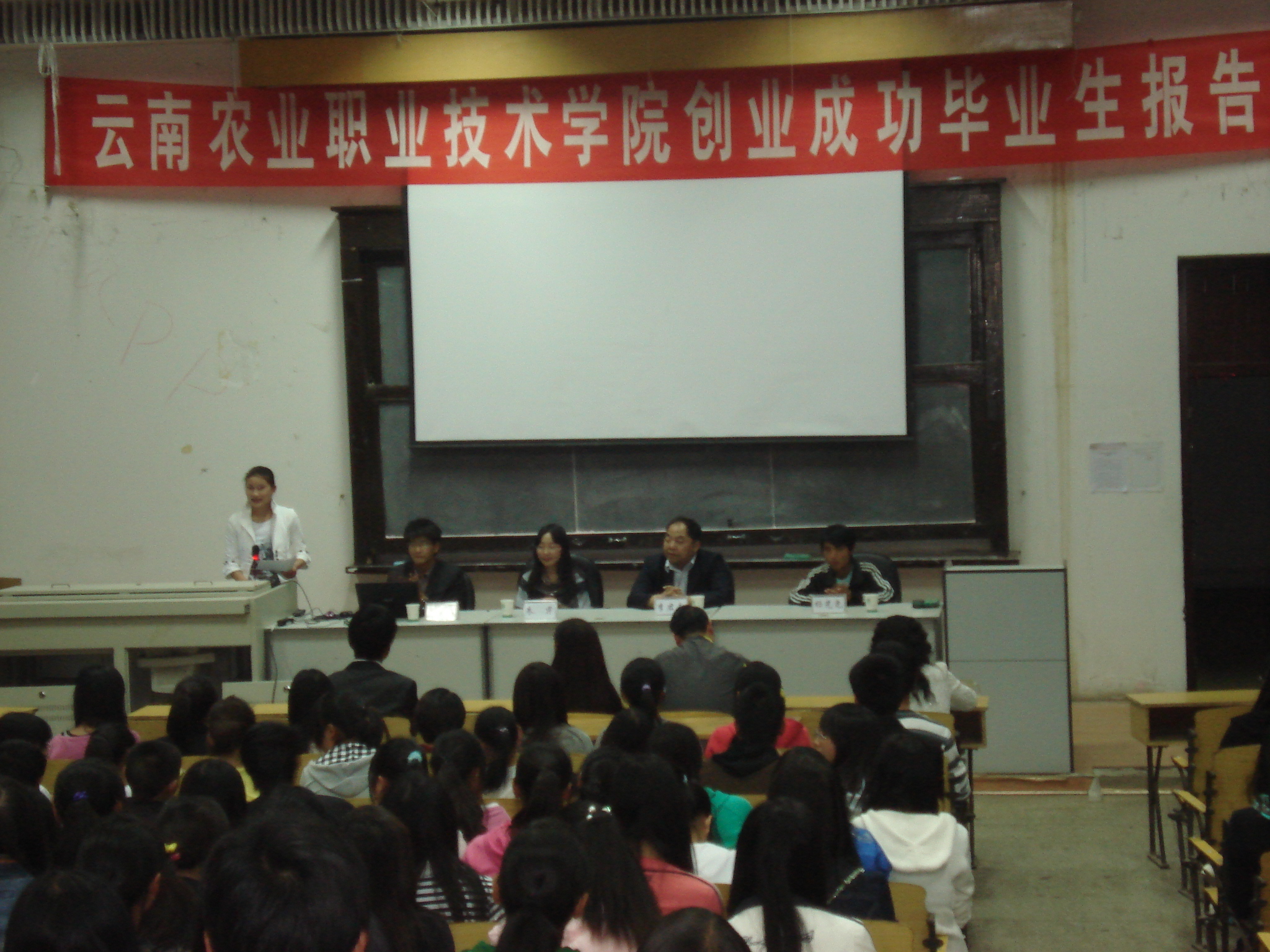 为落实好2011年学院就业工作优质服务年活动,作为创业帮扶月重要活动之一的创业成功毕业生报告会分别于2011年4月6、7日晚7点半在茭菱和小哨校区举行。报告会邀请到昆明新长江信息科技有限公司董事长、就业指导师李军武作现场点评和指导。同时,创业成功毕业生报告会也正式拉开了我院4月就业创业帮扶月活动的序幕。