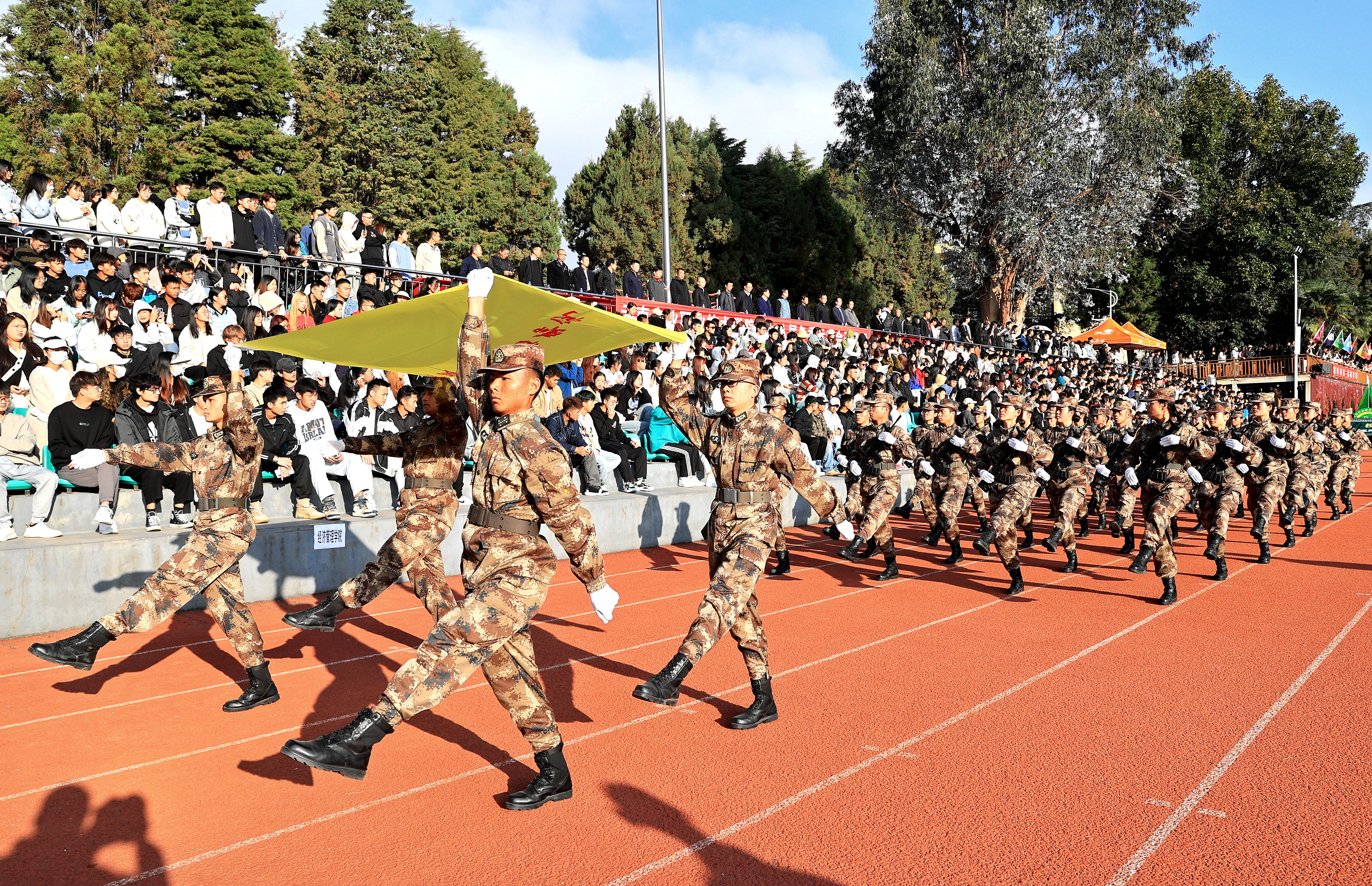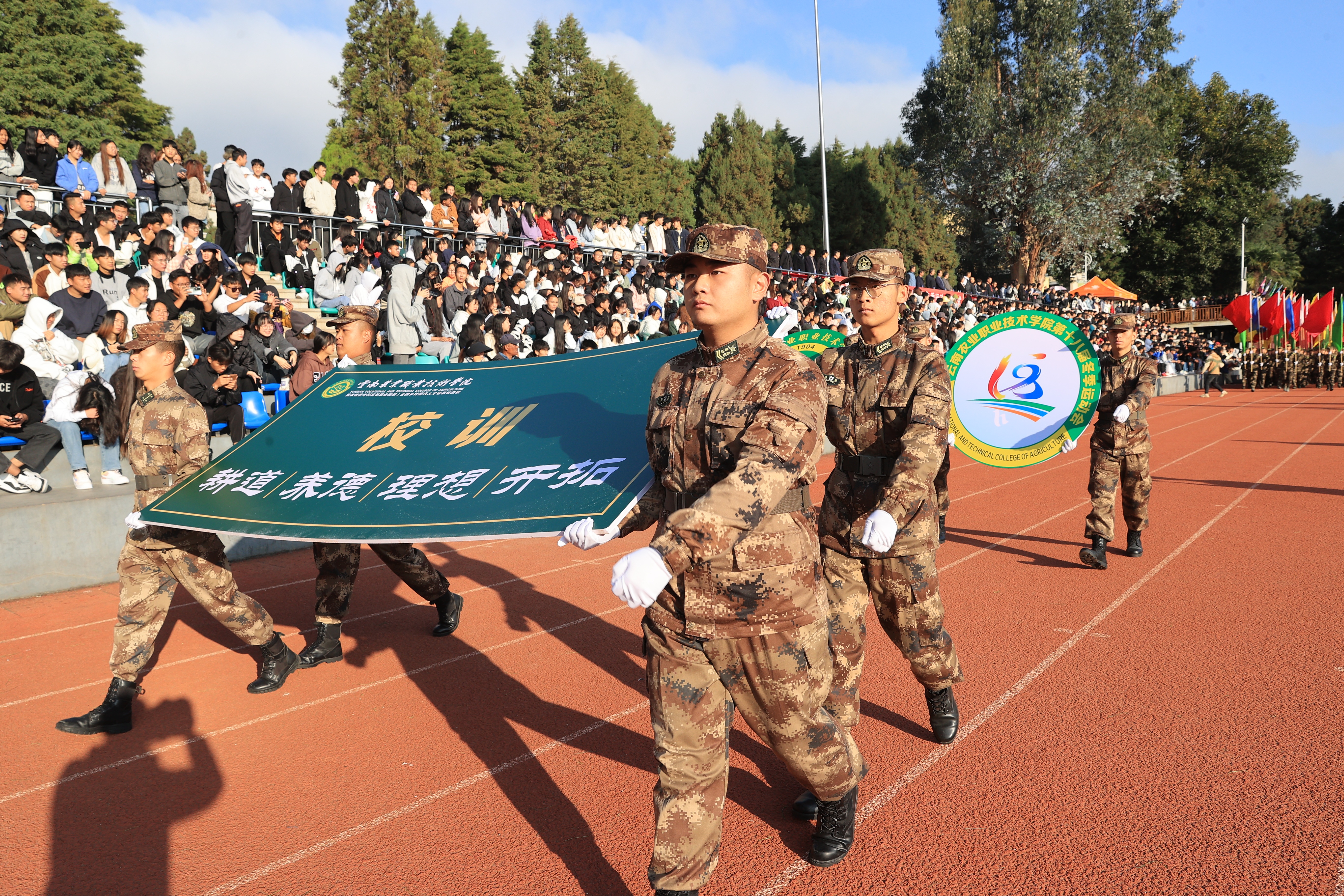 初冬的小哨天高气爽,惠风和畅;国旗仪仗队、校训方队、彩旗方队、教工方队、裁判员代表队、各二级学院运动员代表队等各成方阵,喊着嘹亮的口号,迈着整齐的步伐,动作整齐,精神抖擞,有序进入会场。精彩纷呈的入场式隆重而欢快,充分展现了农职学子以昂扬奋进的姿态学习贯彻党的二十大精神,以实际行动助力健康中国、体育强国建设,以团结拼搏书写新时代“农职精神”!