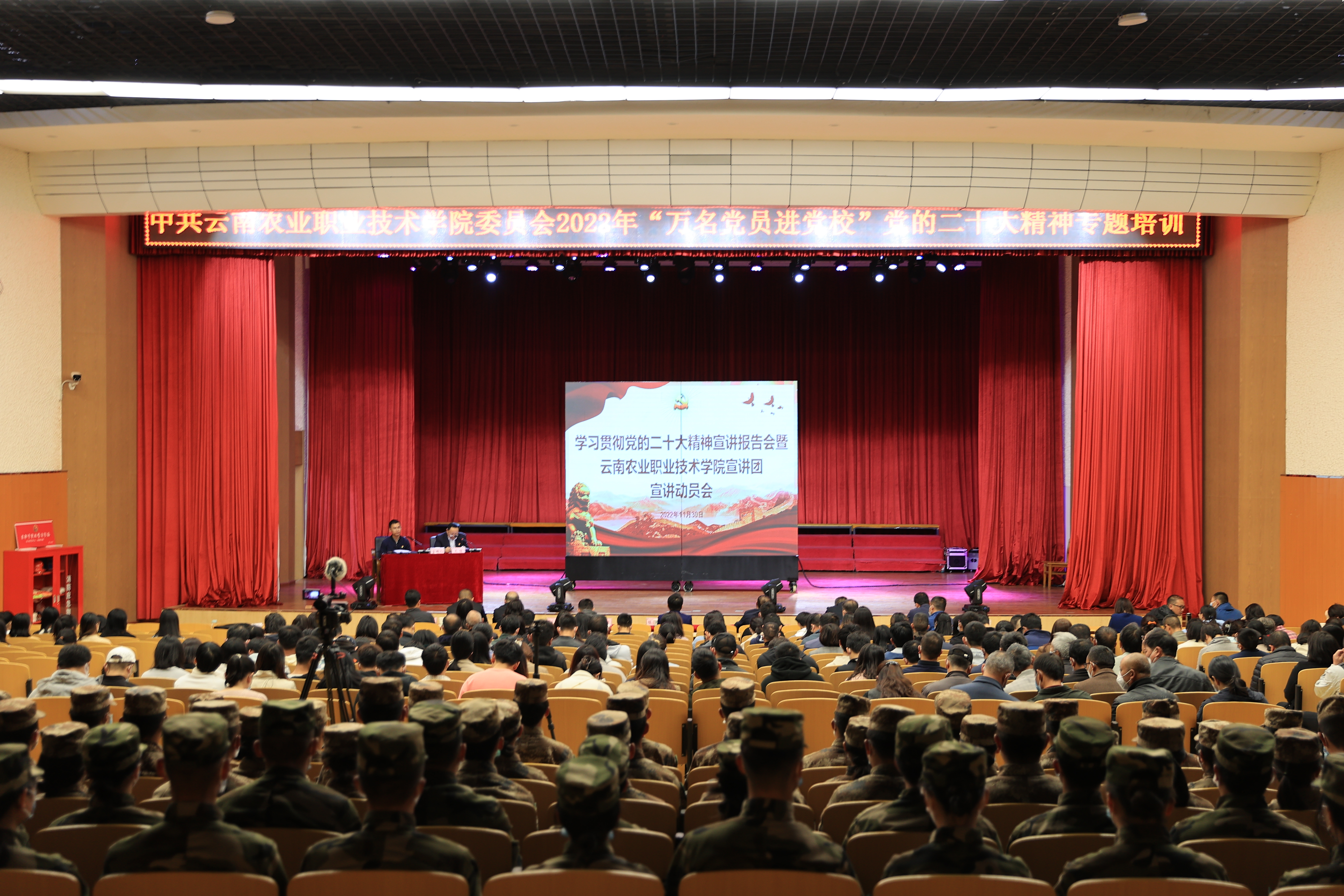 通知中心连日来,学院学习宣传贯彻党的二十大精神宣讲团通过开展全方位、多层次的学习宣讲,在广大师生中间持续掀起学习宣传贯彻党的二十大精神热潮,切实将学习成效转化为推动学院高质量发展的强大动力,激发师生奋进新时代的坚定信念。党委班子成员带头,分别到所在党支部、分管联系部门、思政课课堂、挂钩帮扶点、统一战线座谈交流会等不同场合,分批次、分层次先后走进教室、登上讲台、深入基层,与师生群众面对面宣讲党的二十大精神。