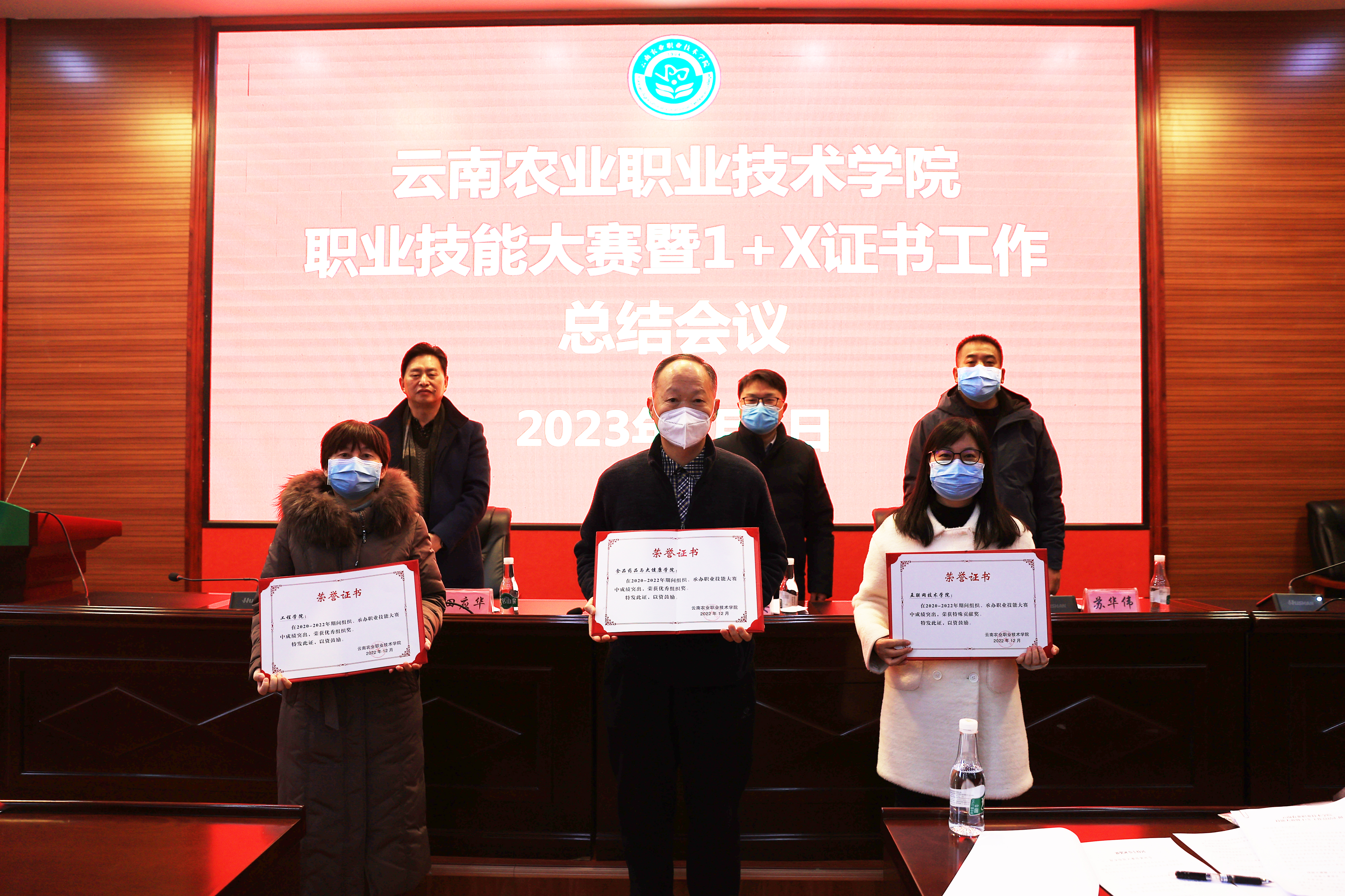 会上,实践教学中心主任刘峻蓉对学院三年以来职业技能大赛暨“1+X”证书工作开展情况进行了总结汇报。田应华副院长宣读了职业技能大赛及1+X工作的获奖名单,与会的学院领导为20名获奖选手、6个X证书优秀证书团队及3个获奖的二级学院颁发了荣誉证书。食品药品与大健康学院和工程学院分别就技能大赛赛项承办及“1+X”证书工作作了交流发言,王丹、温顺斌两位老师作为职业技能大赛优秀指导教师代表作了交流发言。