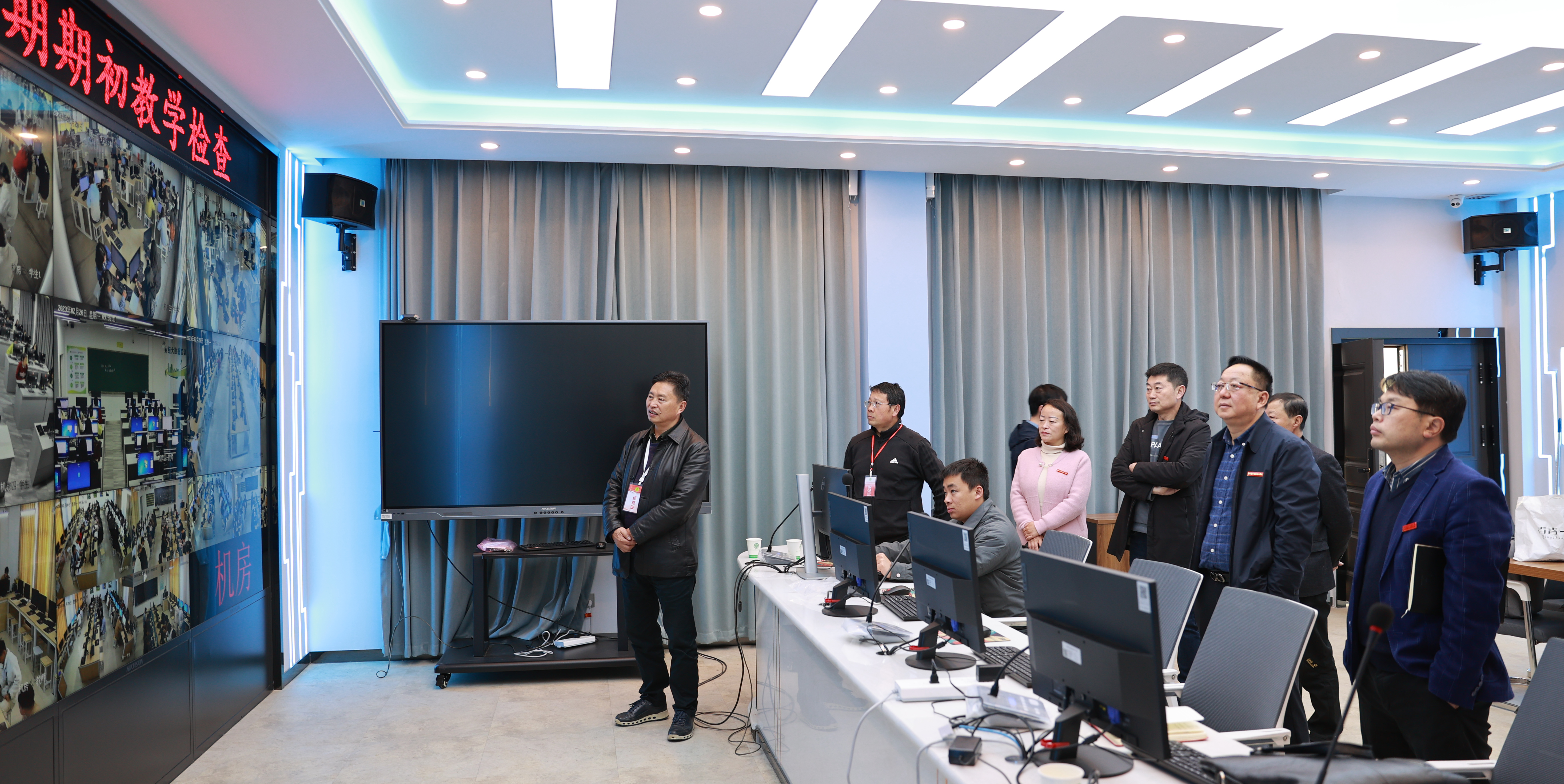在小哨校区教学运行控制中心,学院领导通过教室控制终端详细查看了各个教室的教学运行情况。检查中,文俊书记指出,教学无小事,教师要好好上课,学生要好好学习,部门要好好管理,各部门要加强深度沟通与协作,确保新学期教学工作平稳有序运行。陈太安院长强调,全体教师要“站上课堂、站稳课堂、站好课堂”,努力实现高质量教书育人目标。