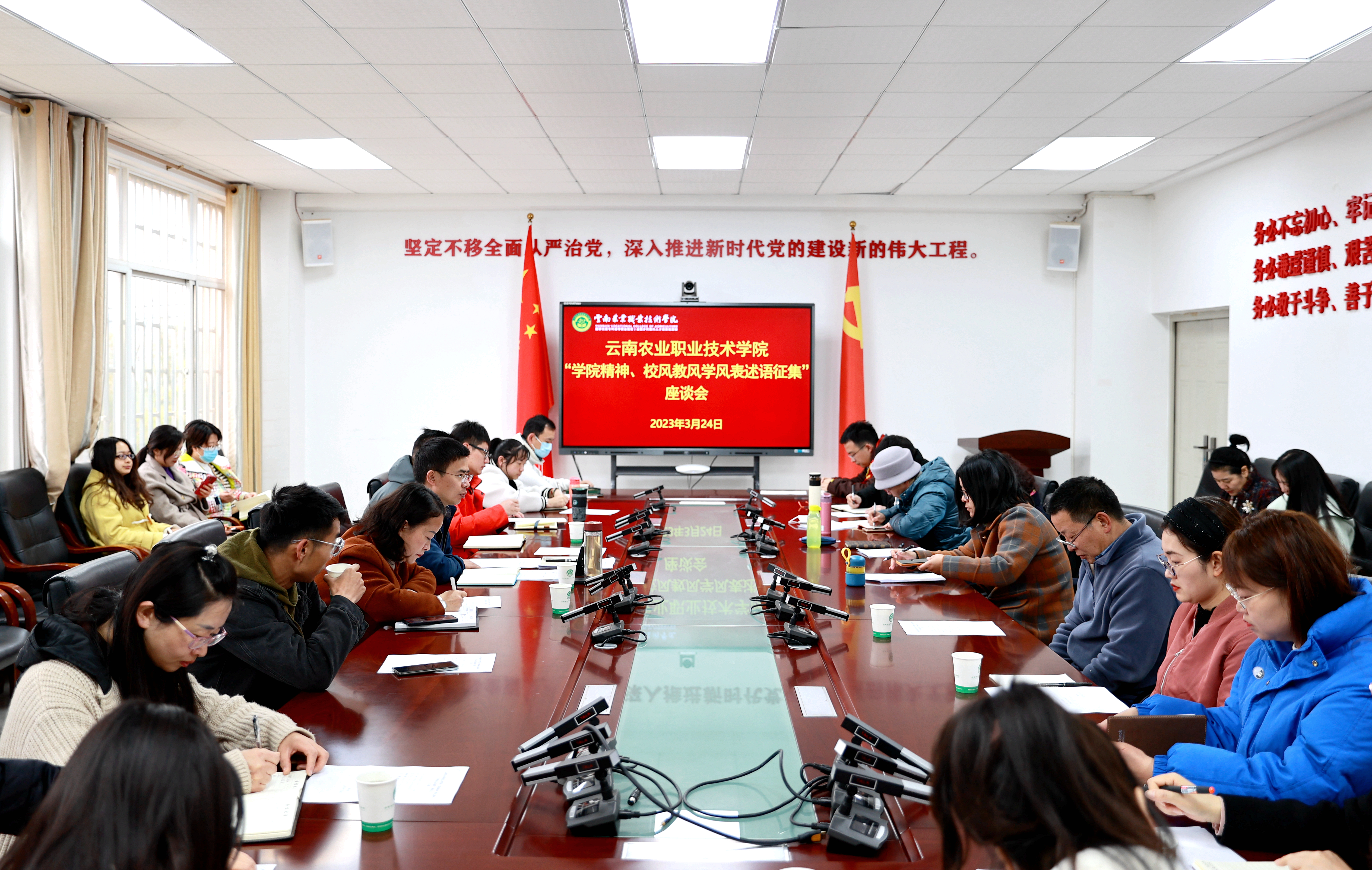 通知中心2月24日上午,为推进省级文明校园建设,完善文化育人体系,统筹做好文化育人顶层设计,进一步凝练学院精神和“三风”表述,学院在小哨校区综合楼四楼会议室召开学院精神及校风教风学风表述语征集座谈会,学院有关领导、宣传部负责人、师生代表、校友代表齐聚一堂畅谈“学院精神及校风教风学风”表述语,会议由伍学龙副书记主持。