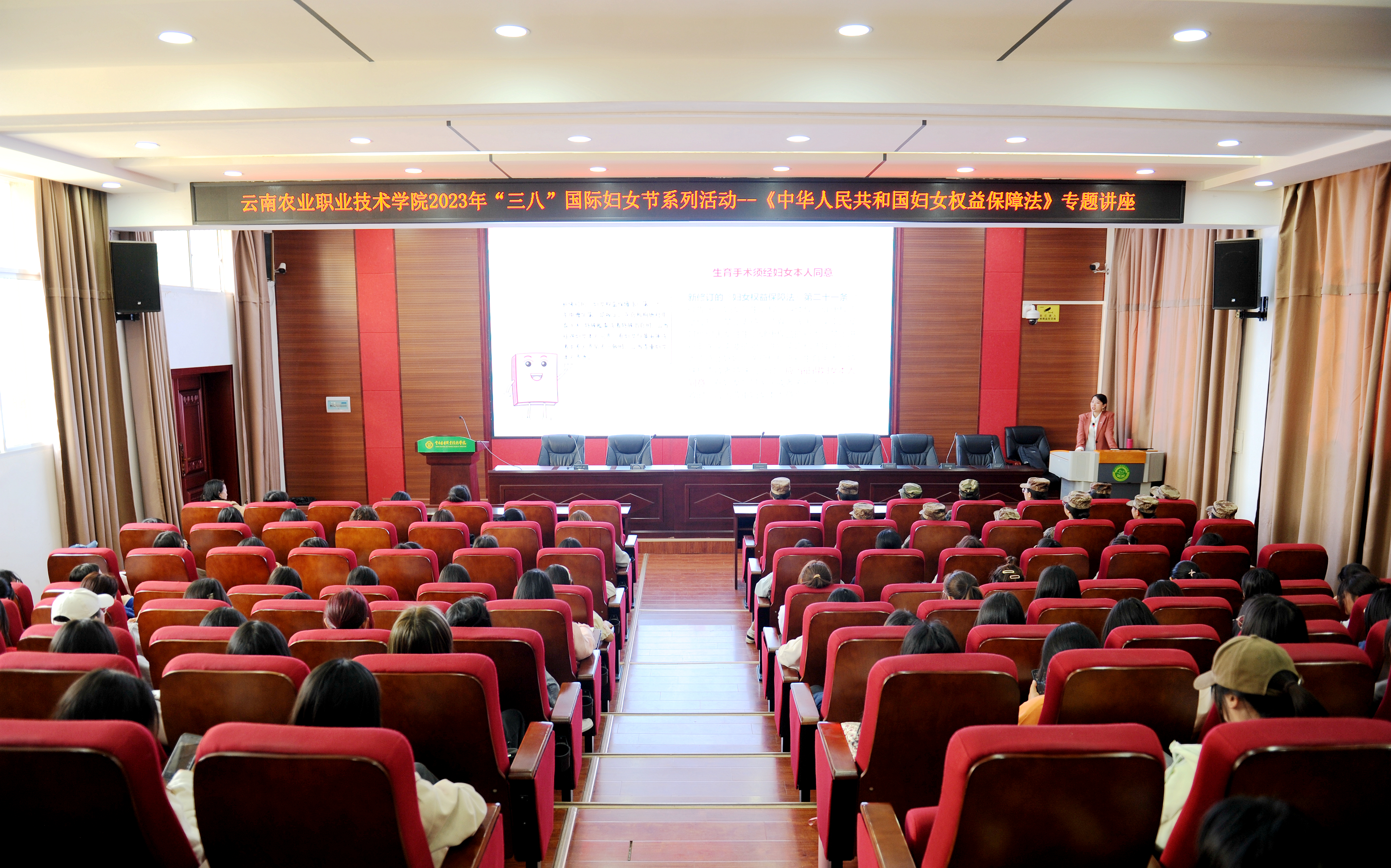 为贯彻落实习近平总书记关于保障妇女权益方面的重要指示,增强女性群体的法制思维和维权意识,3月8日下午,学院妇联邀请云南民定律师事务所副主任、云南省律师协会第八届理事会妇女权益及未成年保护法律业务研究会副主任林启凤律师到校,为女教职工和女学生开展主题为《新妇女权益保障法亮点解读》的知识讲座。《中华人民共和国妇女权益保障法》是事关妇女事业长远发展的重要法律,是我国人权保障法律体系的重要组成部分,讲座中,林启凤律师围绕《妇女权益保障法》修订背景、修订后的亮点、妇女享有的权益等三个方面,结合案例及相关法律规定,阐述了女性在婚姻、家庭、工作和生活中经常会遇到的婚姻家庭权益、财产分割、家庭暴力、人身权利等相关法律问题,并鼓励妇女要多从法律角度出发,学会运用法律武器维护自身合法权益。