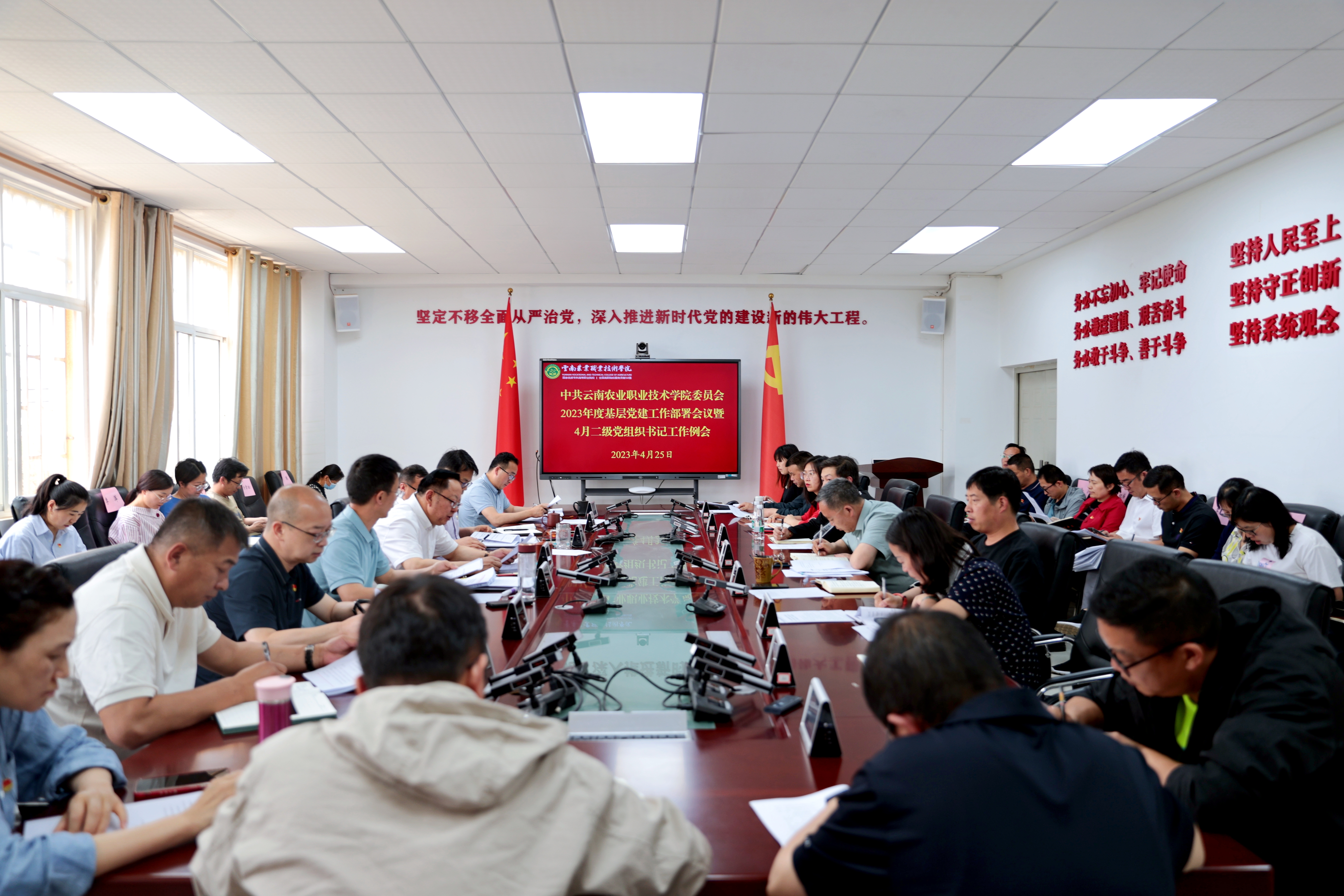 会上,党委副书记、院长陈太安同志传达学习了习近平总书记对云南大学建校100周年的贺信精神、在考察西南联大旧址时的重要讲话精神、给全国涉农高校的书记校长和专家代表的重要回信精神,以及全省组织部长会议、基层党建工作部署视频会议精神和全省教育系统组织工作会议精神。