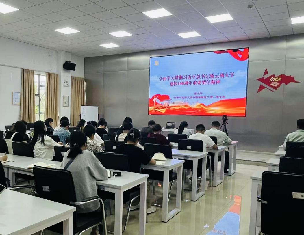 农学与园艺技术学院党总支姚茹瑜、李茜;云南轻纺职业学院食品药品学院专职副书记记汪焕芹;云南新东方教育培训学校有限公司凌云;云南中医药大学中药学院各支部党员代表围绕习近平总书记致云南大学建校100周年重要贺信精神和习近平总书记给中国农业大学科技小院学生的回信精神,结合工作岗位和个人发展作了分享交流。