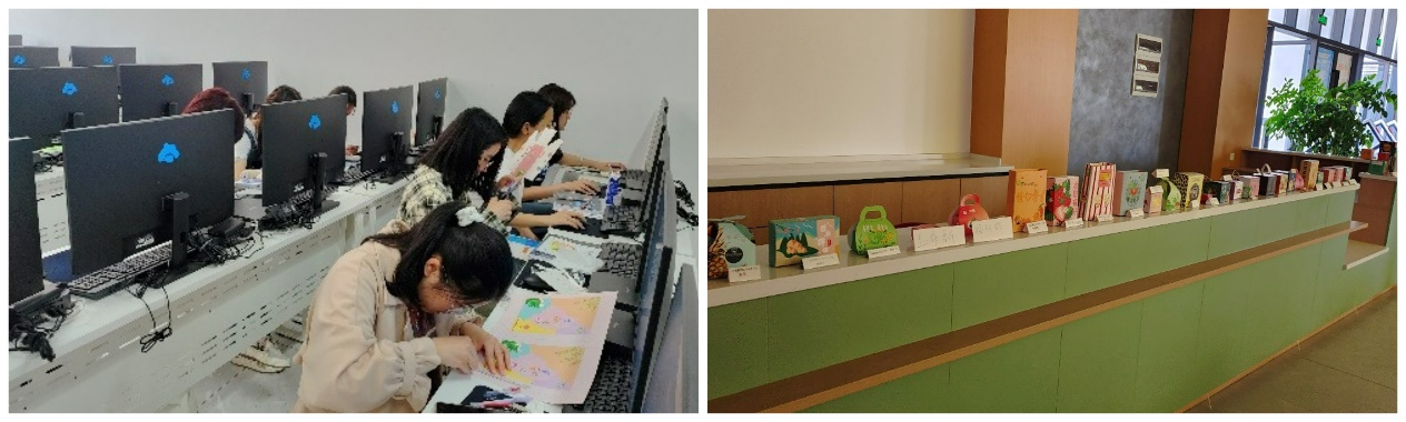 包装策划与设计专业全体学生共同开展了产品外包装设计实训实践活动:“包罗万象•创意筑型”包装设计。同学们以“农职鲜品伴手礼”为主题,综合运用AutoCAD、Illustrator等计算机辅助设计软件,设计、打印、裁切并拼装出自己的礼盒作品。4天里,同学们设计并完成礼盒作品共计100余份。