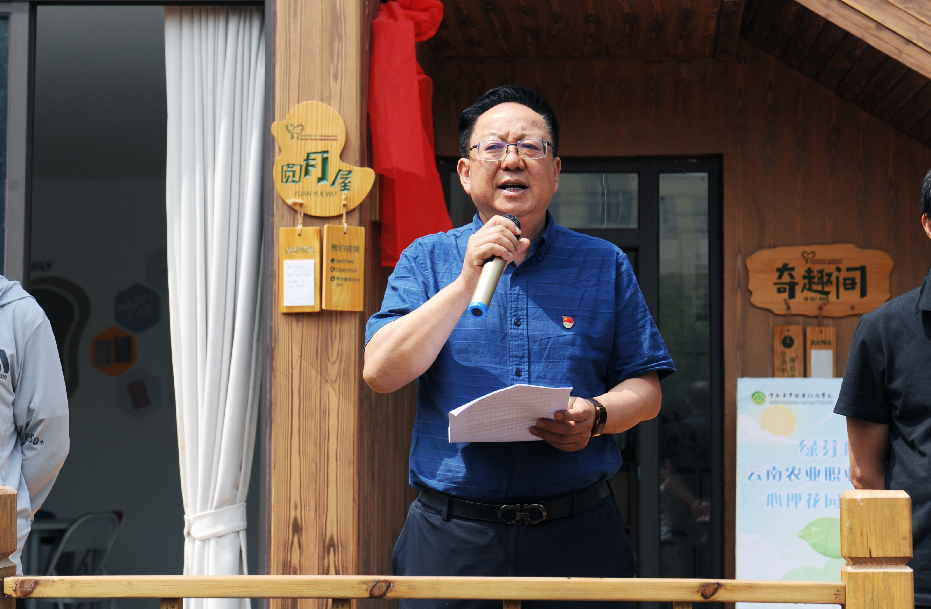 文俊书记在揭牌仪式上致辞。他指出,让云农职学生更加健康阳光,是落实立德树人根本任务的应有之义。学院高度重视学生的心理健康,在各部门通力合作下,健全了“五位一体”心理健康教育工作体系和四级心理健康教育工作网络。“绿芽心苑”已经成为了一个让全校师生都能放松愉悦的地方,花园美景、田园劳作、萌宠相伴,它不仅仅是一个心理咨询空间,更是一个心理疗愈空间。拓展建设“绿芽心苑”,为学校开展心理健康教育工作打下了坚实的基础。