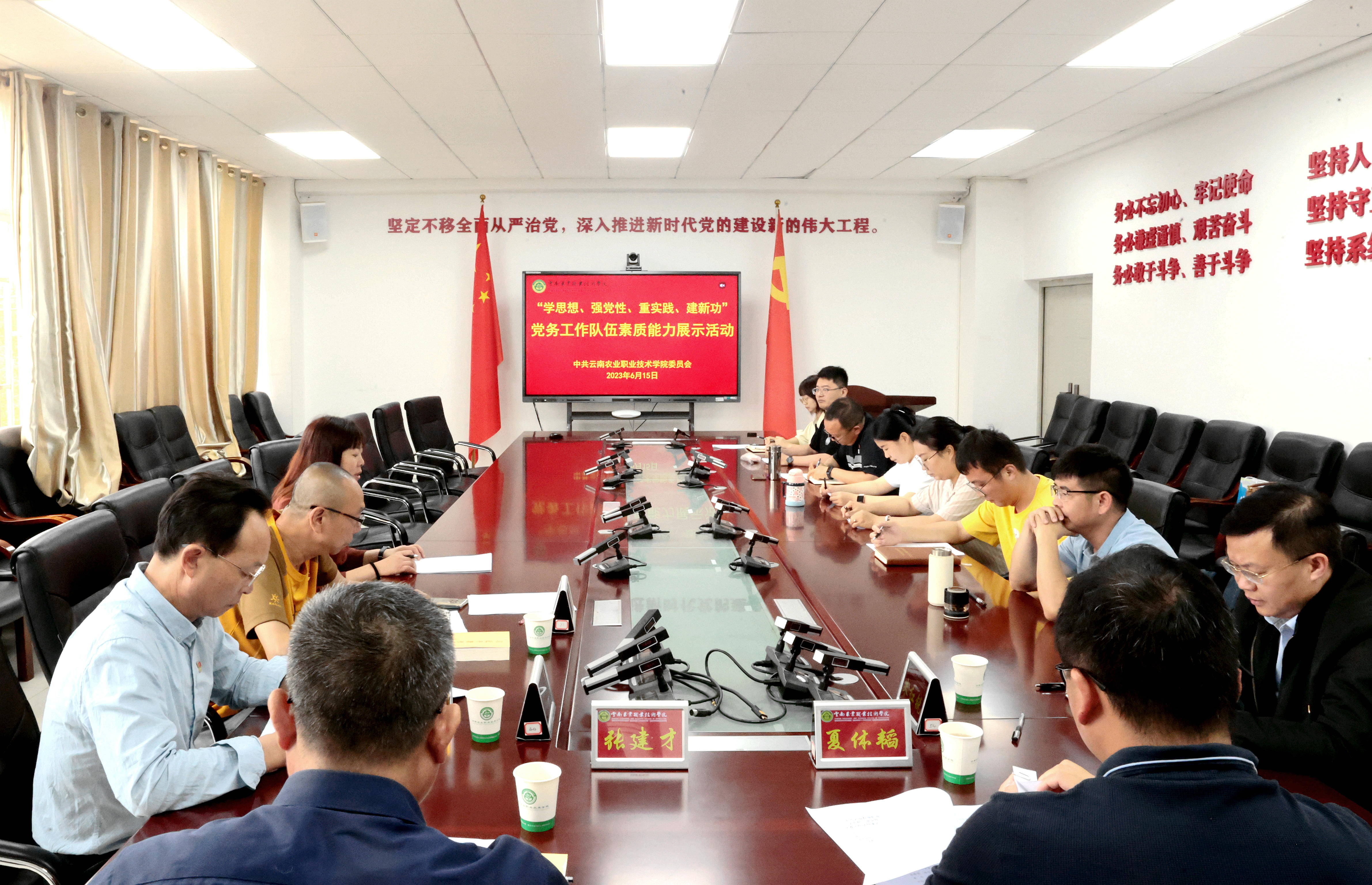 通知中心为深入学习贯彻习近平新时代中国特色社会主义思想和党的二十大精神,推动主题教育不断走深走实,学院党委于6月15日在小哨校区综合楼421会议室组织开展了党务工作队伍素质能力展示活动。活动由党委组织部副部长欧阳晓芳主持,党委委员、组织部部长夏体韬,党委委员、马克思主义学院党总支部书记张建才,基础部(体育工作部、公共艺术教育部)党总支部书记施碧强,省种畜繁育推广中心党总支部书记刘晓跃等5位同志担任评委。