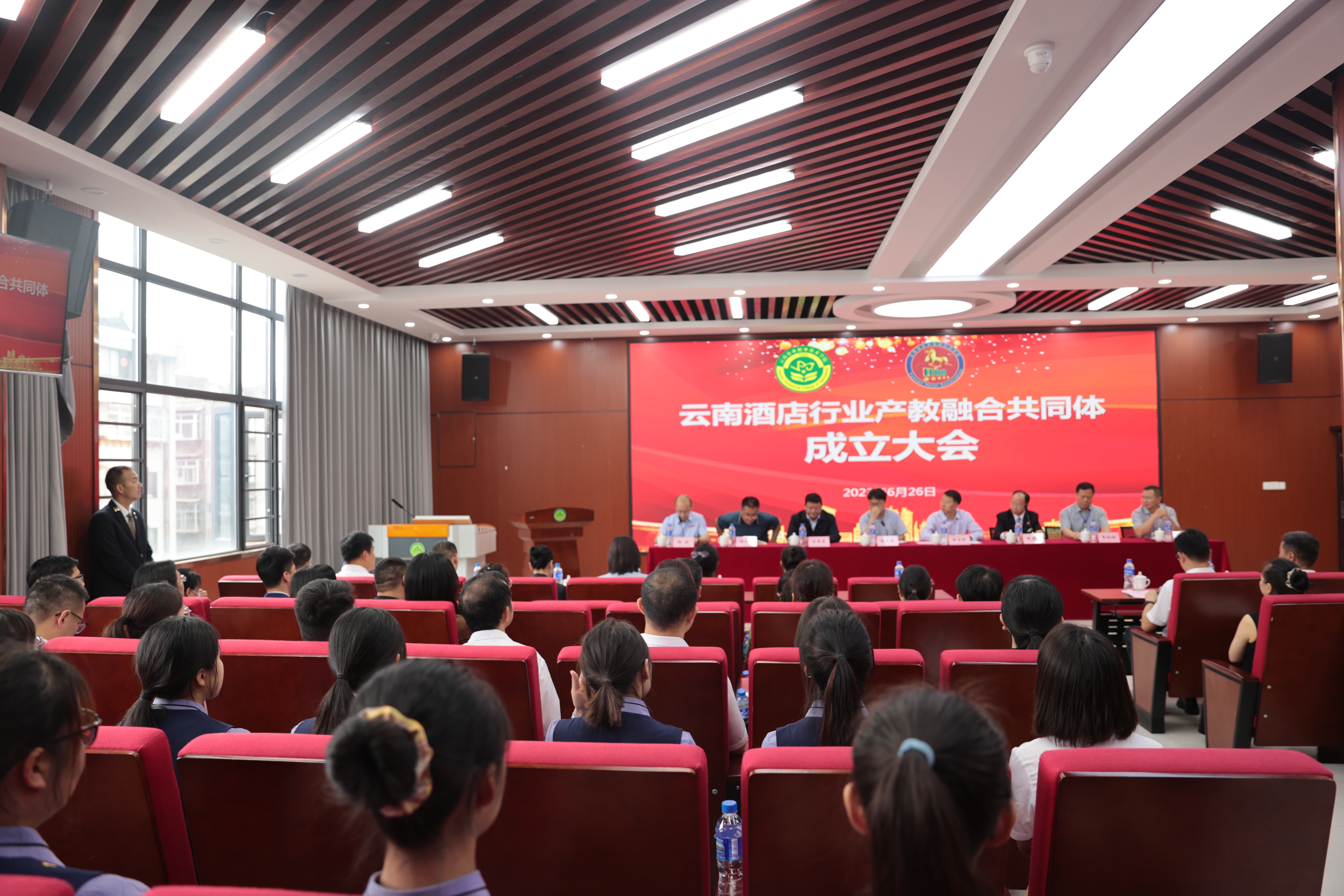 6月26日,云南酒店行业产教融合共同体成立大会在best365中国官方网站茭菱校区召开。云南省教育厅职业教育与成人教育处胡正刚副处长,云南中华职业教育社办公室王学光主任,昆明市教育科学研究院路小军副院长(主持工作),云南省旅游饭店行业协会赵国雄会长、肖斌副会长,云南育华现代职业教育评估中心李红响主任以及学院院长陈太安教授等领导出席会议;30余家共同体成员单位代表参加会议。会议由学院党委委员、副院长杨波主持。