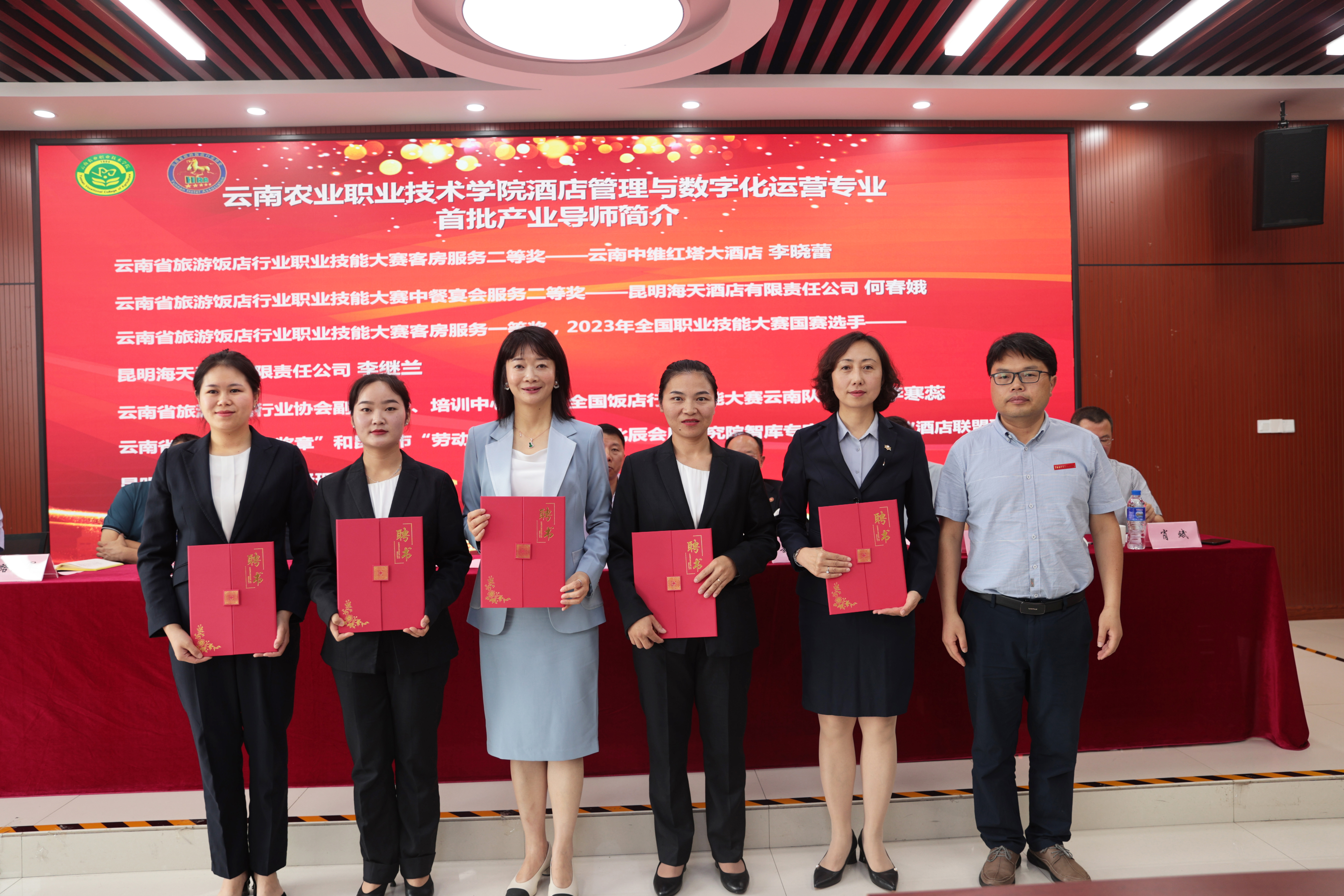 会上还聘任了云南省旅游饭店行业协会副秘书长、培训中心主任、全国饭店行业技能大赛云南队总教练李寒蕊,云南省“五一劳动奖章”和昆明市“劳动模范”获得者、中国会展经济研究会常务理事、中国会议酒店联盟副会长、昆明云安会都酒店总经理张杜娟等9位行业大师为best365中国官方网站酒店管理与数字化运营专业产业导师,并颁发聘书。