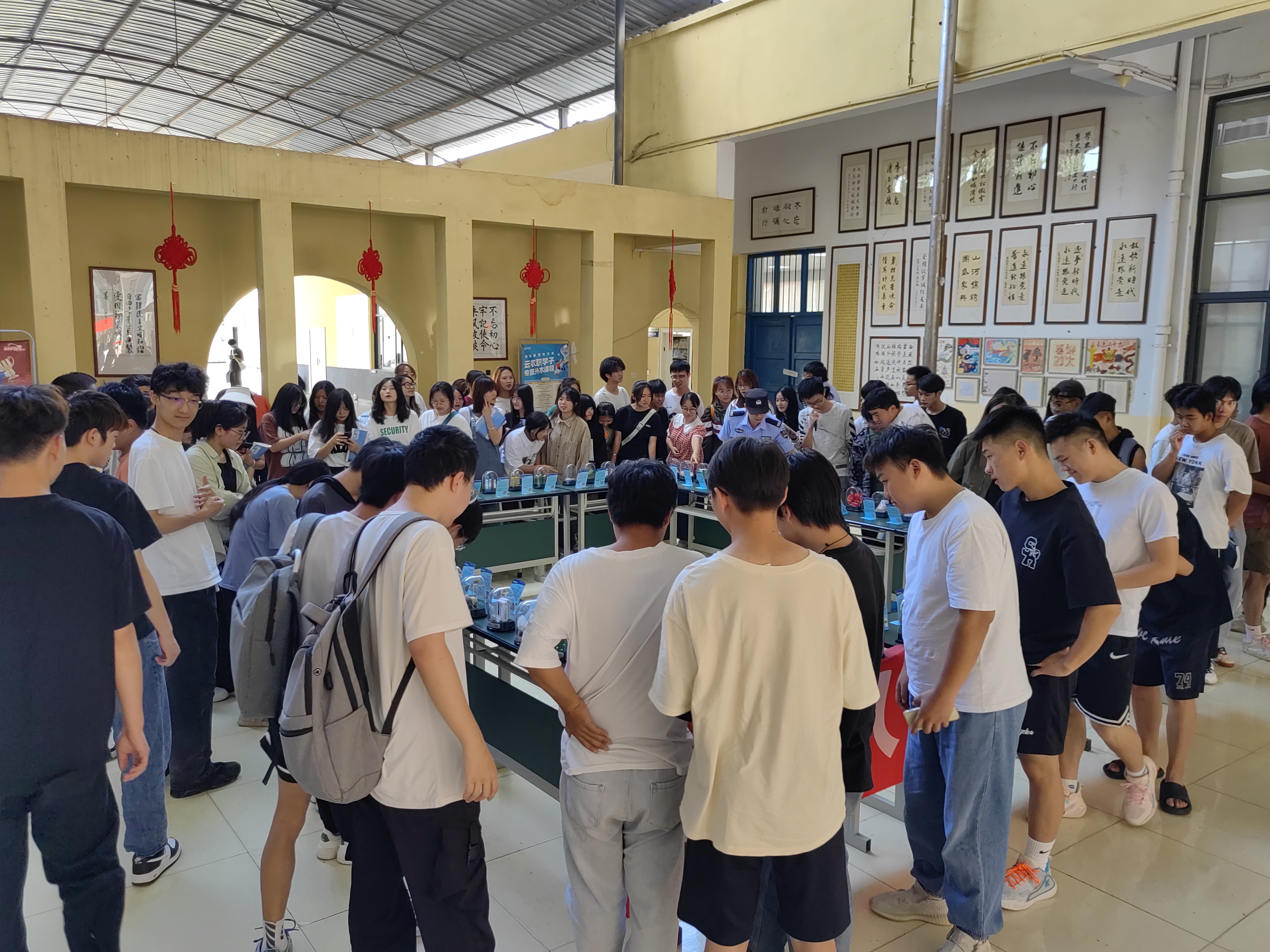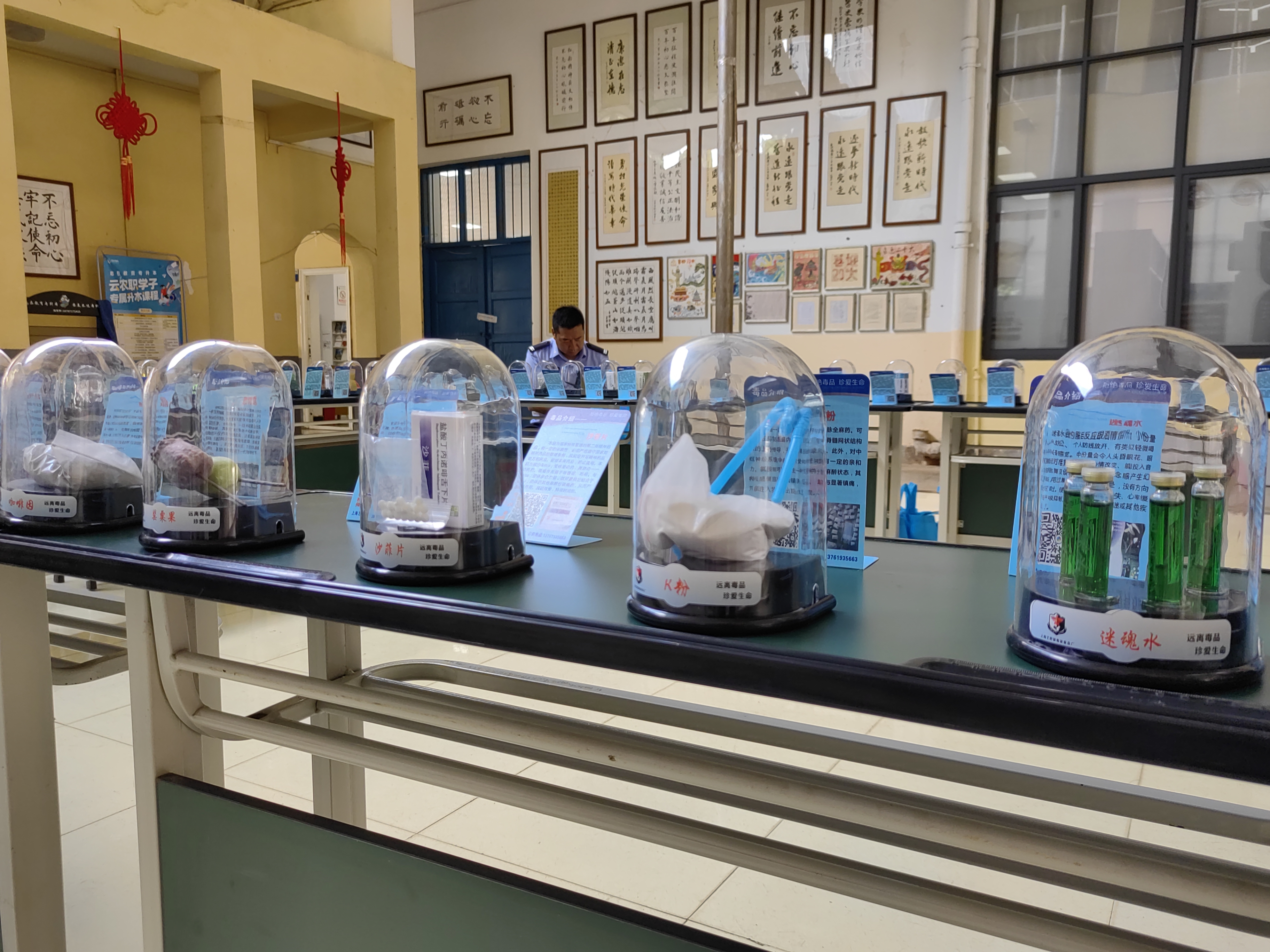 活动现场展示了毒品仿真模型和禁毒知识展板,民警详细宣讲了不同毒品的危害和禁毒相关法律法规。通过图片、文字和70余种毒品仿真样品的展示,让同学们更为直观地认识毒品,特别是隐蔽性极强的新型毒品,提高学生对合成毒品类型、传播方式、发展趋势及危害的认知能力,增强学生禁毒和自我防范意识。