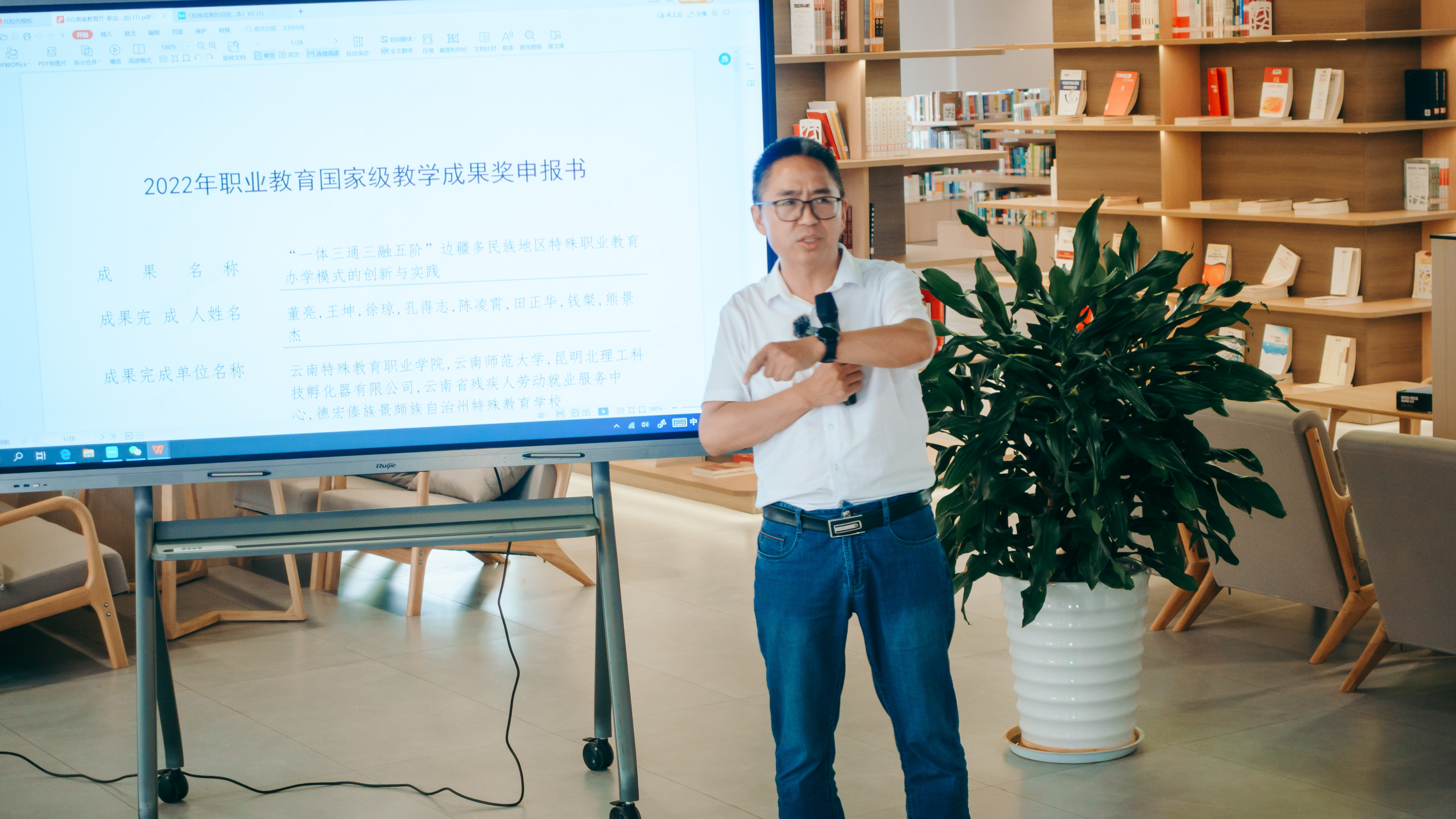 本次培训共分为两个阶段。第一个阶段邀请到云南省高等职业教育研究所所长、云南师范大学职业技术教育学院职业教育研究所所长王坤博士作“如何开展教学成果奖申报工作”主题讲座。王坤博士以其团队的教学成果奖申报书和教学成果报告为例,从成果选题、成果凝练、申报材料撰写等方面细致阐述了教学成果奖培育及申报的具体技巧和方法,使我院教师了解教学成果奖的内涵与实质及其凝练方法、技巧,进一步提升了教师教学研究与改革能力,为学院下一步冲击省级、国家级教学成果奖打下基础。