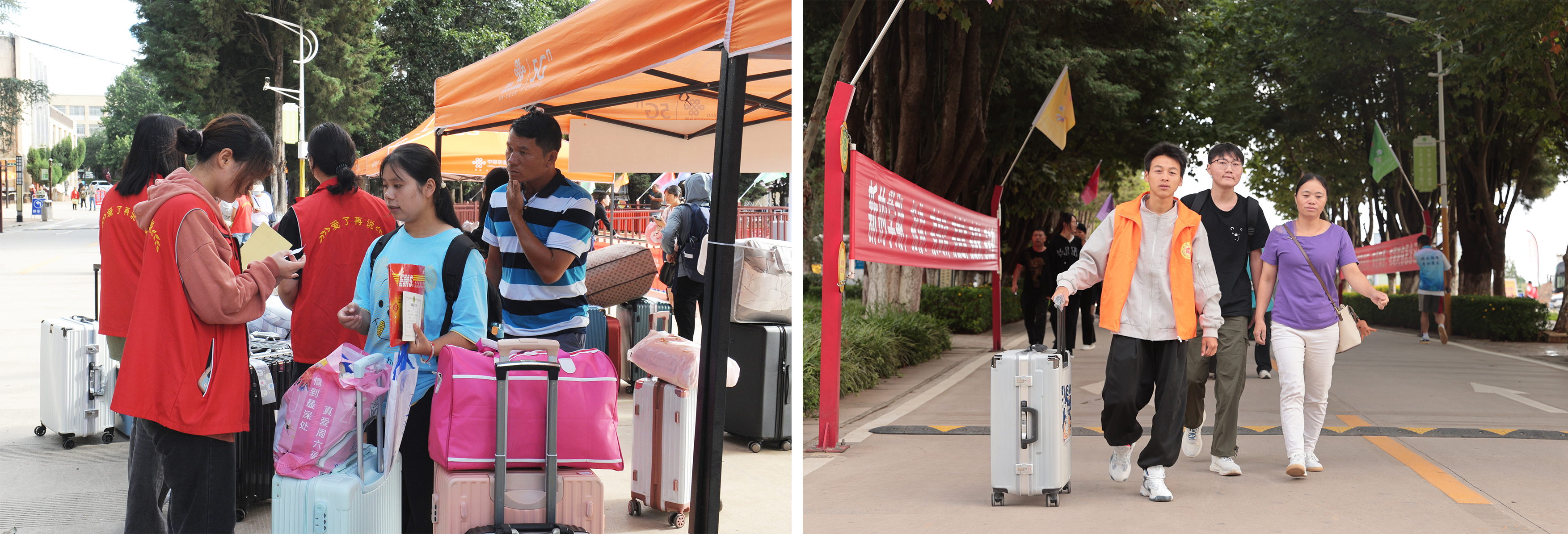 为迎接新生们的到来,志愿者们热情周到,准备充分,一切有条不紊。校园里随处可见的志愿服务人员,满心欢喜地接待大家,脸上洋溢着灿烂的笑容。争先恐后为新生提行李、引路,获得了新生及家长们的好评。