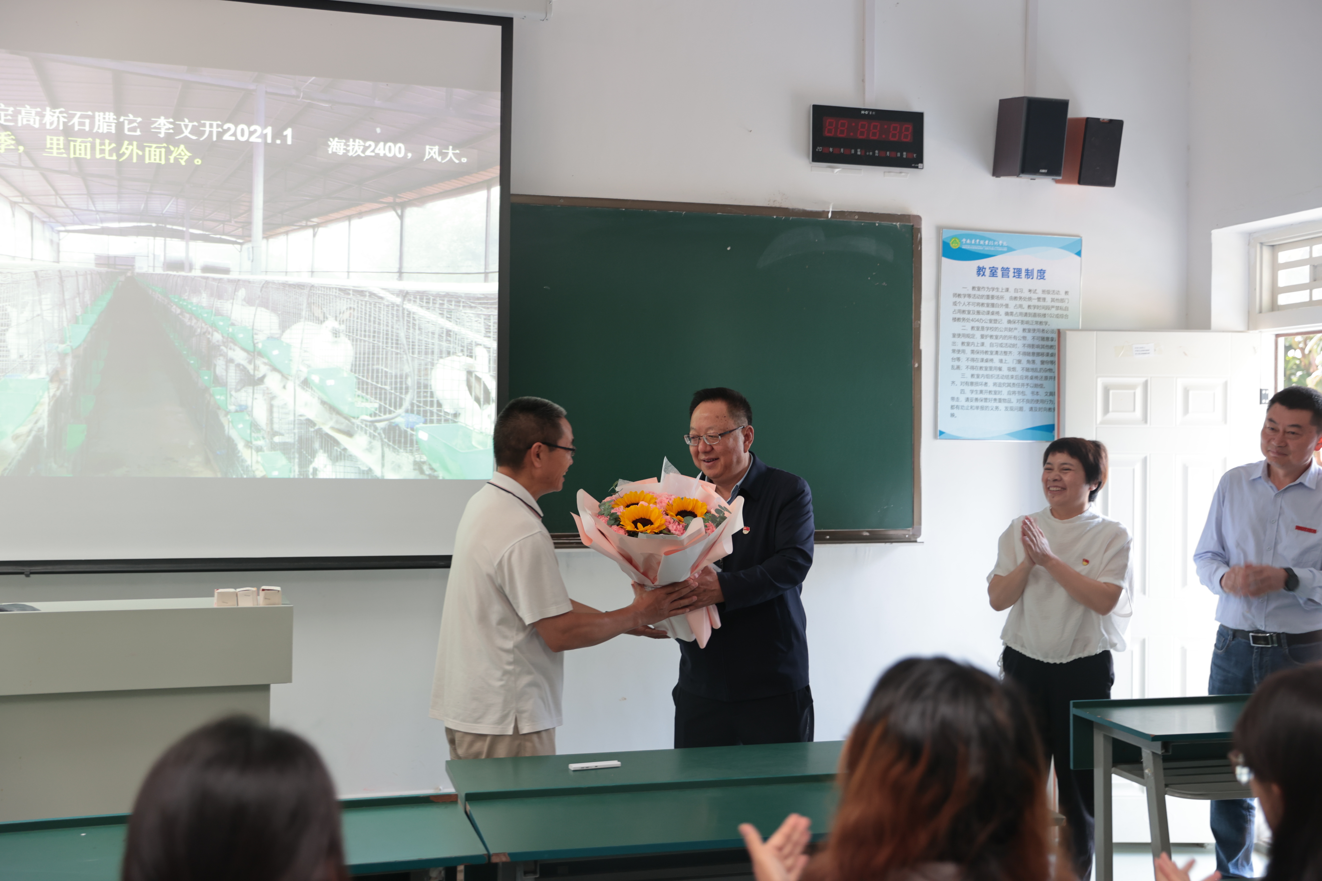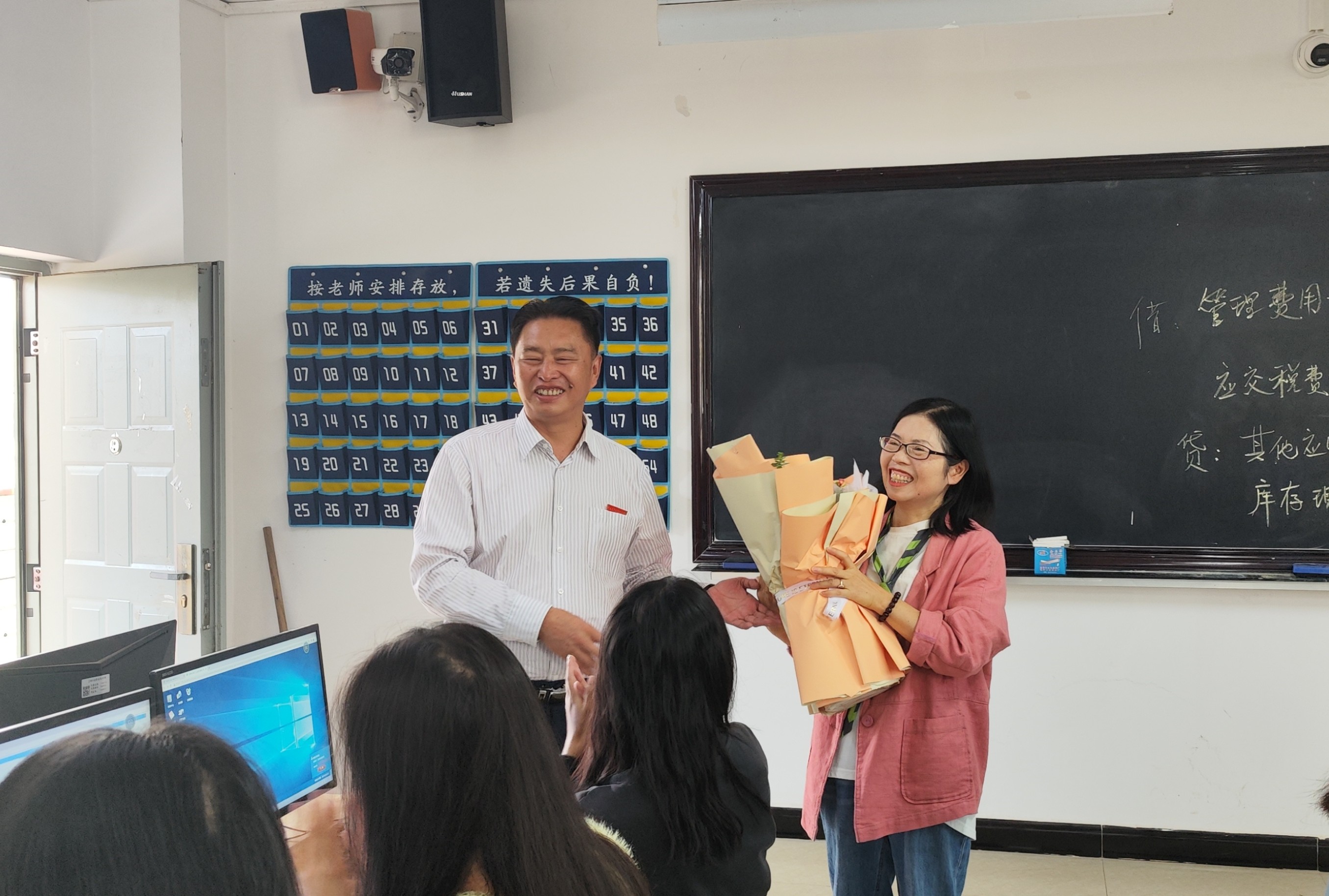 铭记园丁恩,鲜花诉深情。一束束美丽盛开的鲜花是学院领导为教师们送上的美好祝愿。老师们接过鲜花,欣喜的笑容在他们的脸上绽放,幸福的感动在他们心中流淌。教室里,学生真诚祝福老师节日快乐并报以热烈的掌声,洋溢着温馨欢乐的气氛。老师们纷纷表示,感谢学院的关心关爱,会继续发扬爱岗敬业、无私奉献精神,牢记为党育人、为国育才使命,为教书育人事业继续贡献自己的光和热,为培养高素质技术技能人才贡献自己的智慧和力量!