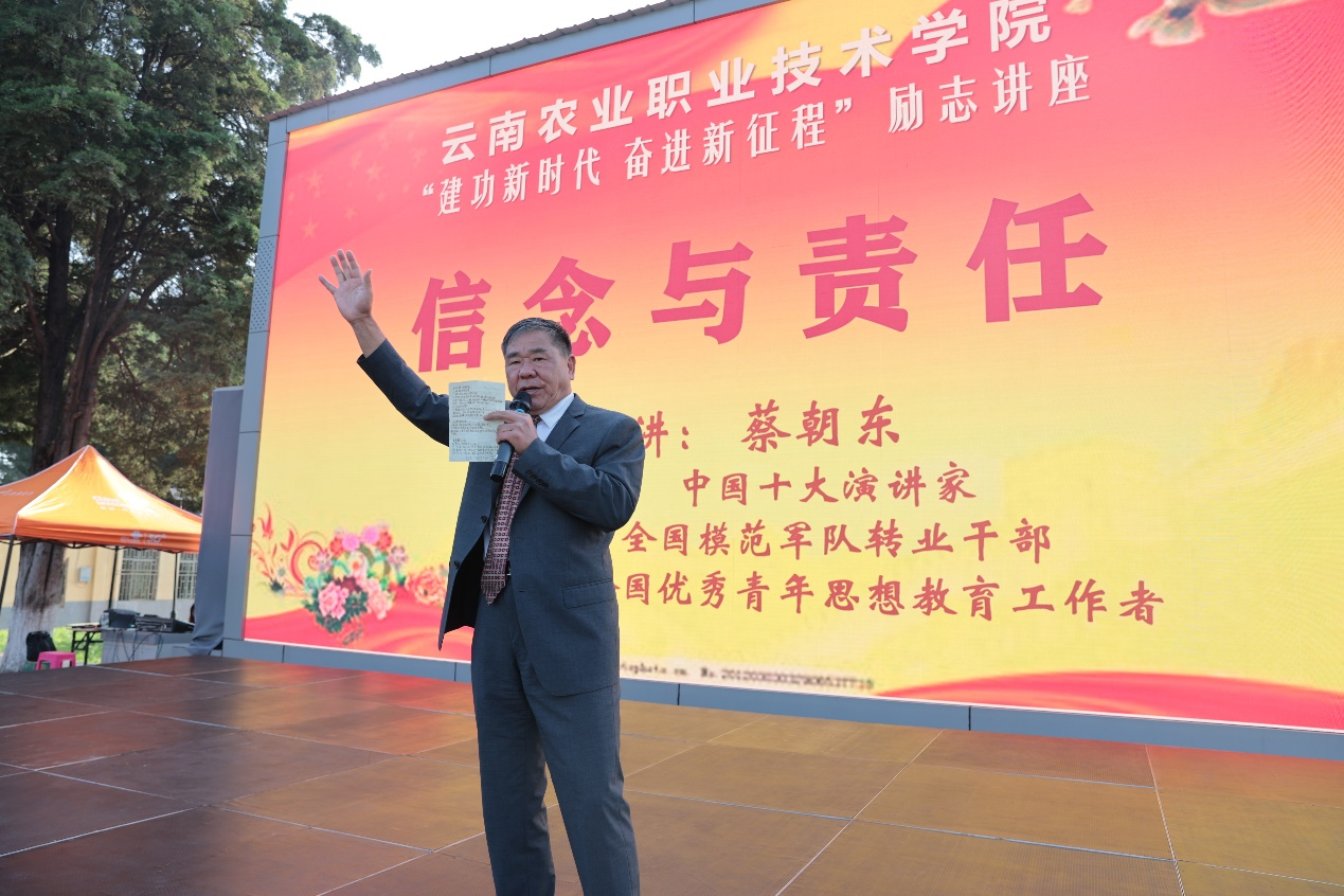 蔡朝东老师寄语农职新生:世界上敌人不可怕,困难不可怕,失败不可怕,最可怕的是自己,最难战胜的也是自己,战胜自己就是胜利,战胜自己就是成功。