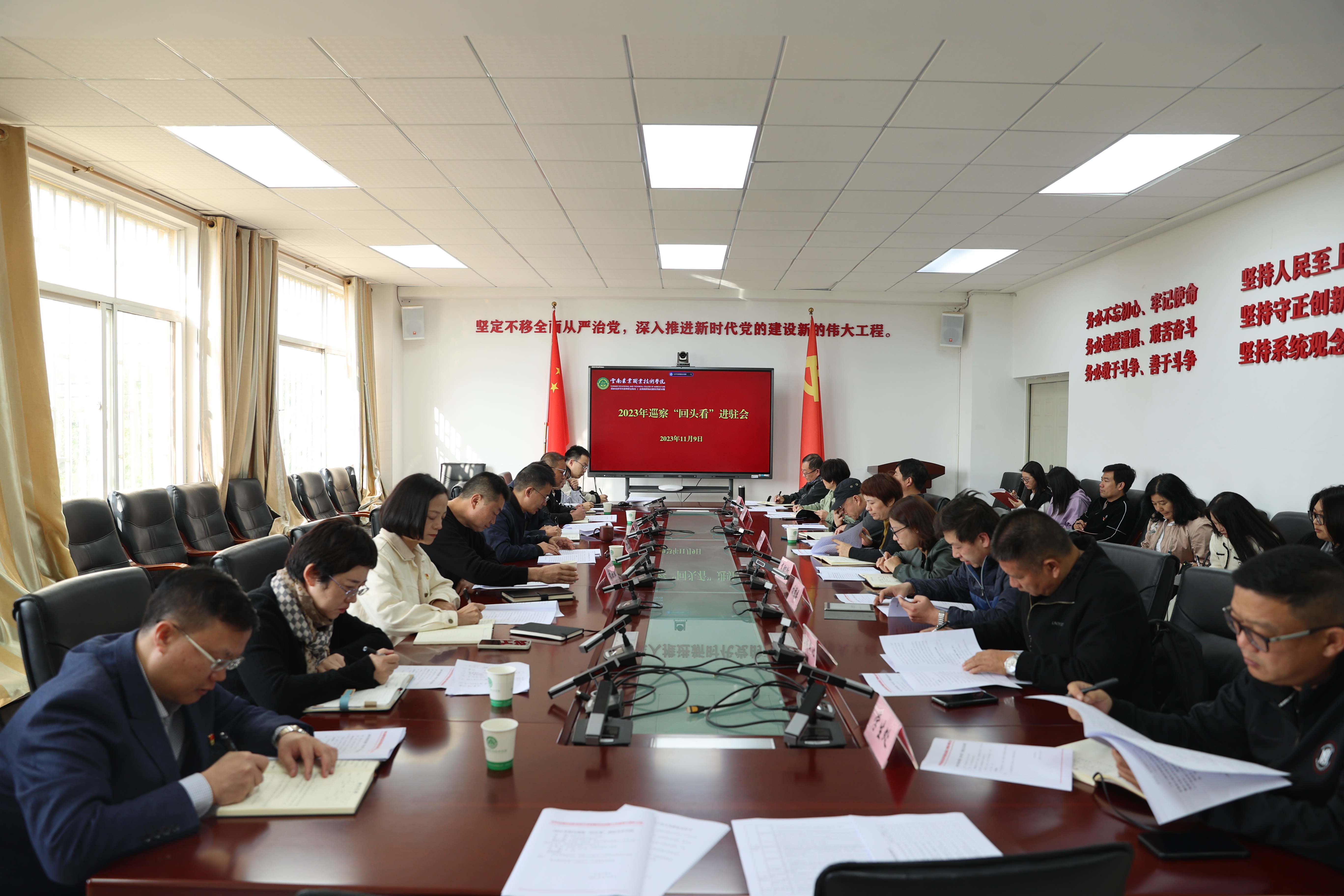 通知中心根据学院党委和巡察工作领导小组统一安排部署,11月9日,学院在小哨校区四楼会议室召开2023年校内巡察“回头看”进驻动员会暨业务培训会。巡察工作领导小组领导,巡察办相关人员,专项工作组全体成员;被巡察党政部门主要负责人参加会议。