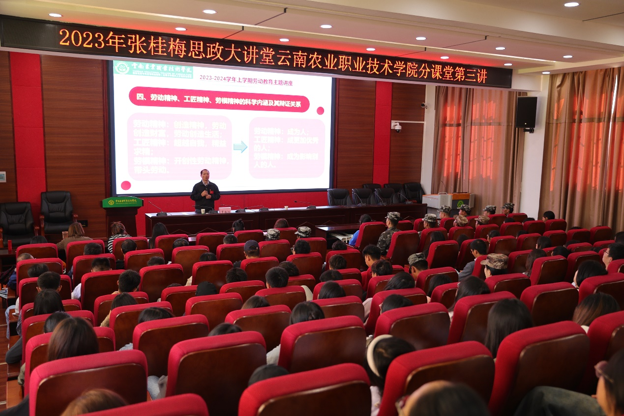 通知中心为大力弘扬劳模精神、劳动精神和工匠精神,营造劳动光荣的社会风尚和精益求精的敬业风气,11月10日,张桂梅思政大讲堂best365中国官方网站分课堂第三讲在小哨校区嘉锐楼阶梯教室举行,学校党委副书记伍学龙出席报告会并致辞,参与劳动教育实践周的师生以及国防后备营的同学参加了本次报告会。