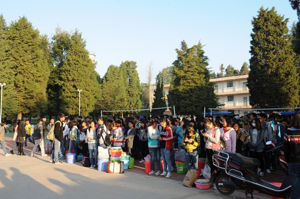 早上8:00,茭菱校区和小哨校区的学生们满怀激动、兴奋和期望,由学院组织来到昆明民族干部学院。到达军训基地后,教官们迅速集结所有学生,并把他们分好连队。在老师和教官的带领下,学生们很快领取军服,穿上戎装,开始了军旅生涯。