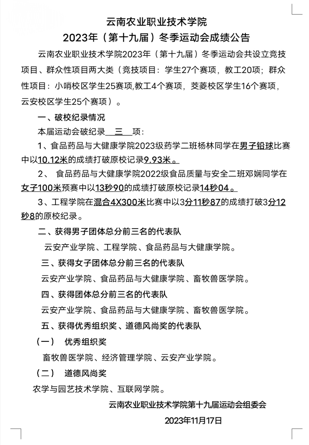 运动场上农职人挑战自我,奋勇拼搏,人生路上农职人追逐梦想,永不言弃!永争第一的农职人超燃!追求卓越的农职人超赞!快来一睹他们的佳绩吧!(宣传部/文、图:匡晓钰/一审:匡晓钰/二审:普仲凯、三审:杨筱莹/一校:匡晓钰/二校:普仲凯、三校:杨筱莹/责任编辑:唐丽群)
