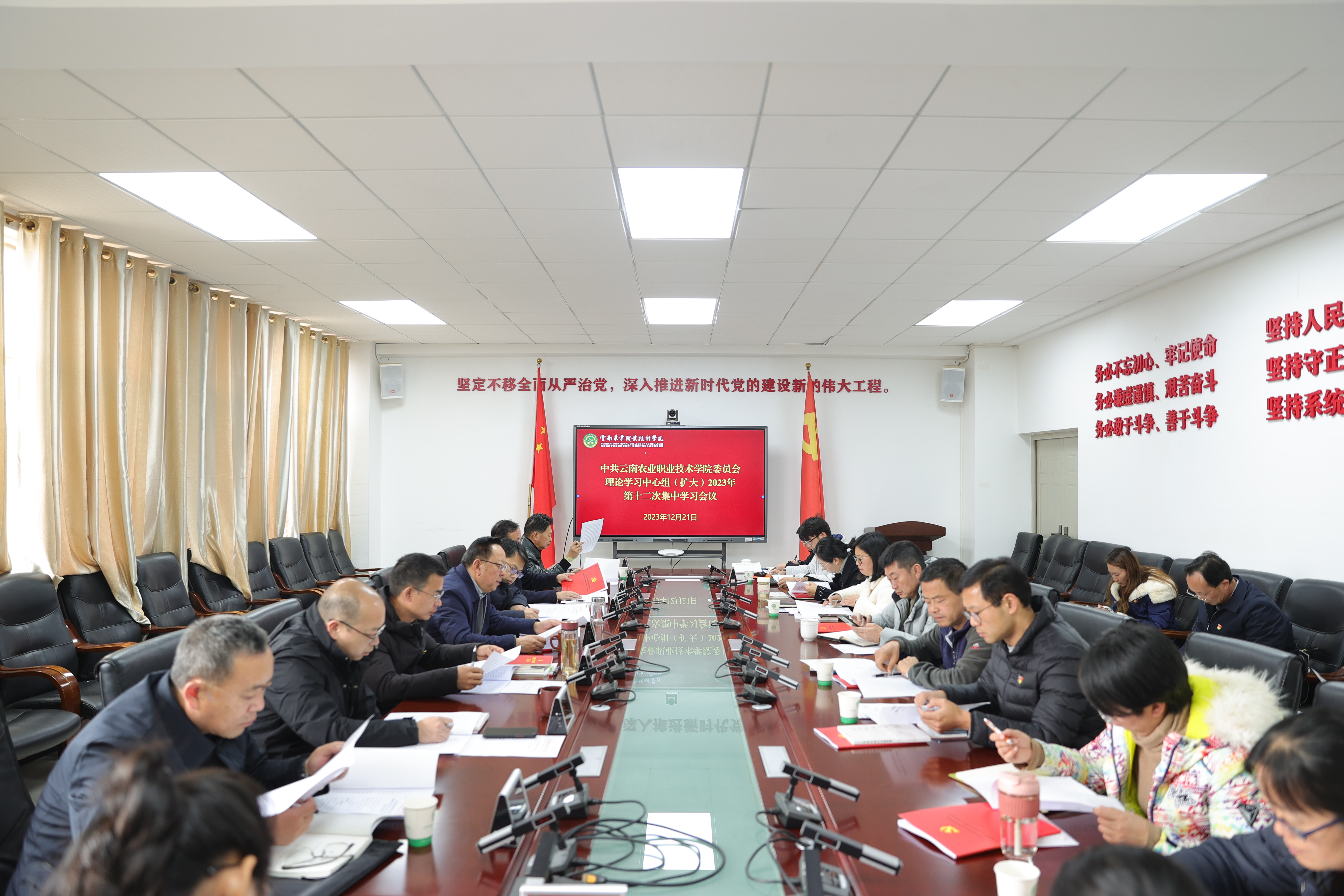 通知中心12月21日下午,学院在小哨校区四楼会议室召开党委理论学习中心组(扩大)2023年第十二次集中学习会议,党委理论学习中心组成员参加会议,党委书记文俊主持会议并讲话。办公室(党委巡察办)、宣传部、统战部、学生工作部、教师工作部、妇联主要负责人、各党总支书记列席会议。