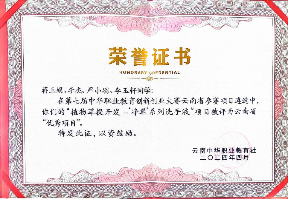 通知中心根据云南中华职业教育社文件《关于请各院校积极组织参加第七届中华职业教育创新创业大赛的通知》(云社[2024]15号)要求,食品药品与大健康学院积极组织师生报名参赛,经过激烈角逐,“植物萃提开发——‘净翠’系列洗手液”项目被评为云南省“优秀项目”奖,best365被授予“优秀组织单位”荣誉。