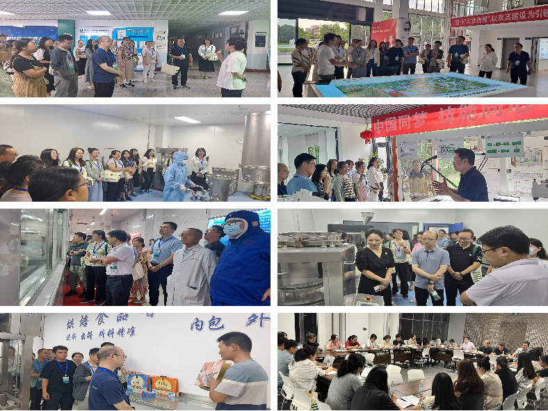 现场参观部分更是让教师们受益匪浅。在现代制剂技术应用的展示中,教师们亲身体验了先进制药技术的魅力,观看了苏食院教师和学生的实操展示,对职业比赛的前沿技术有了更为直观的认识。随后,参观了食品药品研究院、智能制造产业学院、烘焙车间、双高展示馆及本草堂等地,不仅展现了苏食院在食品药品领域的深厚底蕴与创新能力,也为我院教师提供了宝贵的实地学习机会。教师们还深入江苏淮安双汇食品有限公司与江苏天士力帝益药业有限公司考察,了解了企业实际运营与市场需求,为未来的教学科研提供了丰富的实践案例。