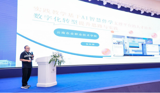 8月6日上午同期举办食品检验检测产教融合、环境监测产教融合、生物医药产教融合、建筑数智化技术赋能教学质量升级创新发展、职业院校国产仪器设备高质量发展等五大分论坛。食品药品与大健康学院张怀辉老师在食品检验检测产教融合分论坛上作了《实践教学基于AI智慧伴学支撑平台的人才培养数字化转型提升思路与实践》的专题报告。
