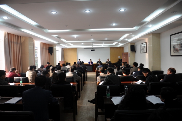大会首先听取考核组组长大理学院纪委书记杨建华同志的动员讲话。杨建华组长在动员中强调了三点,一是要统一思想认识,积极推进党风廉政建设和惩治预防腐败体系建设工作,二是以检查考核为契机,推动党风廉政建设和惩治预防腐败体系建设工作深入开展,三是把握工作重点,确保检查考核工作取得实效。杨建华组长并就检查考核的具体内容、考核机制、程序和方法作了部署安排。