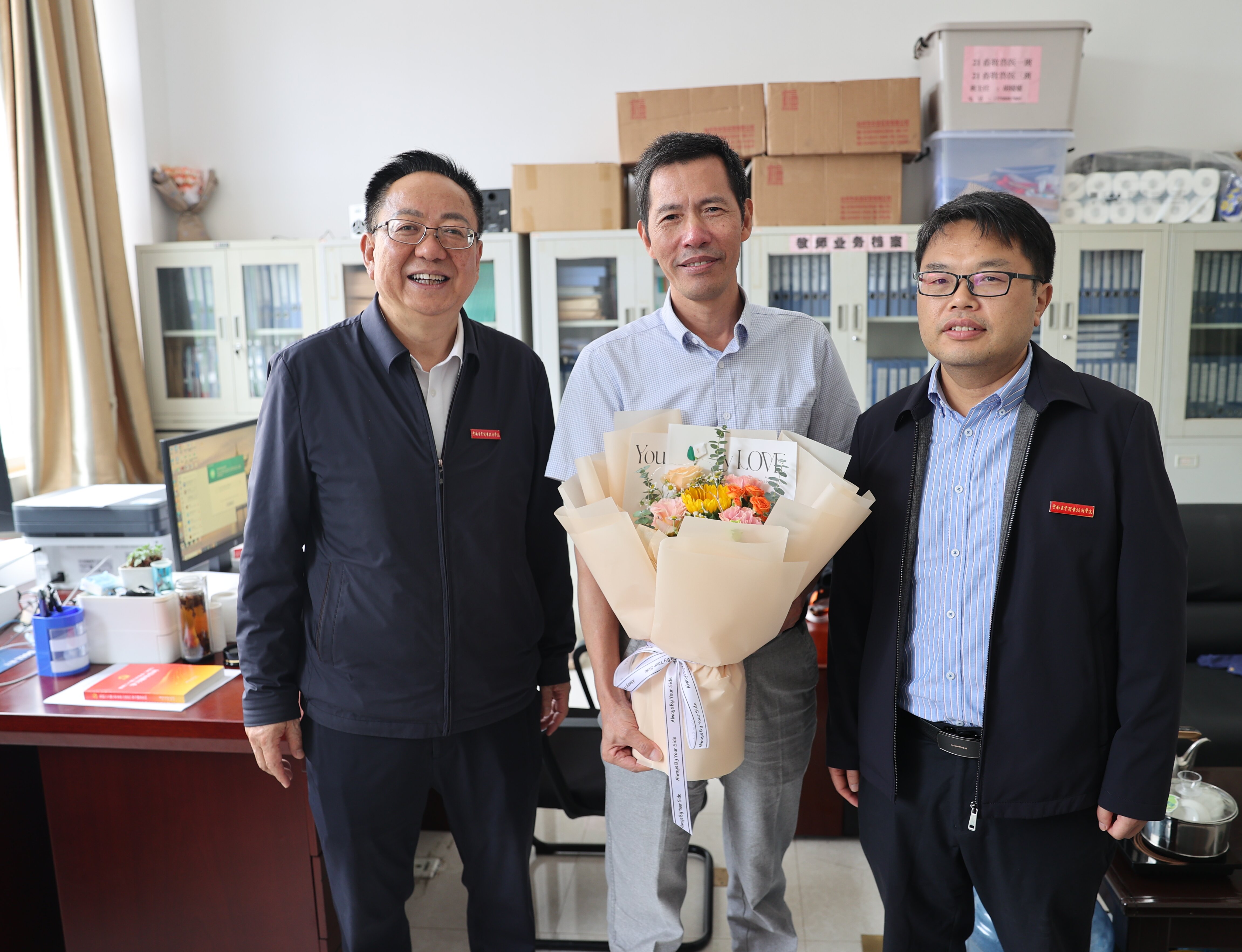 通知中心又是一年秋风起,正是丹桂飘香时。2024年9月10日是我国第40个教师节,为大力弘扬教育家精神,进一步营造尊师重教的良好氛围,学院开展庆祝第40个教师节系列活动。10日上午,学院党委书记文俊、院长陈太安、党委副书记伍学龙、副院长杨波、副院长苏华伟等校领导精心准备了鲜花,向学院银龄教师束剑华、吴敏秋以及躬耕教坛的部分教师代表们送上了最诚挚的慰问和节日祝福。教师代表们表示,感谢学院党委的关心和支持,他们将以更加饱满的热情投入到教育教学工作中,为培养更多知农爱农的优秀人才而努力奋斗。