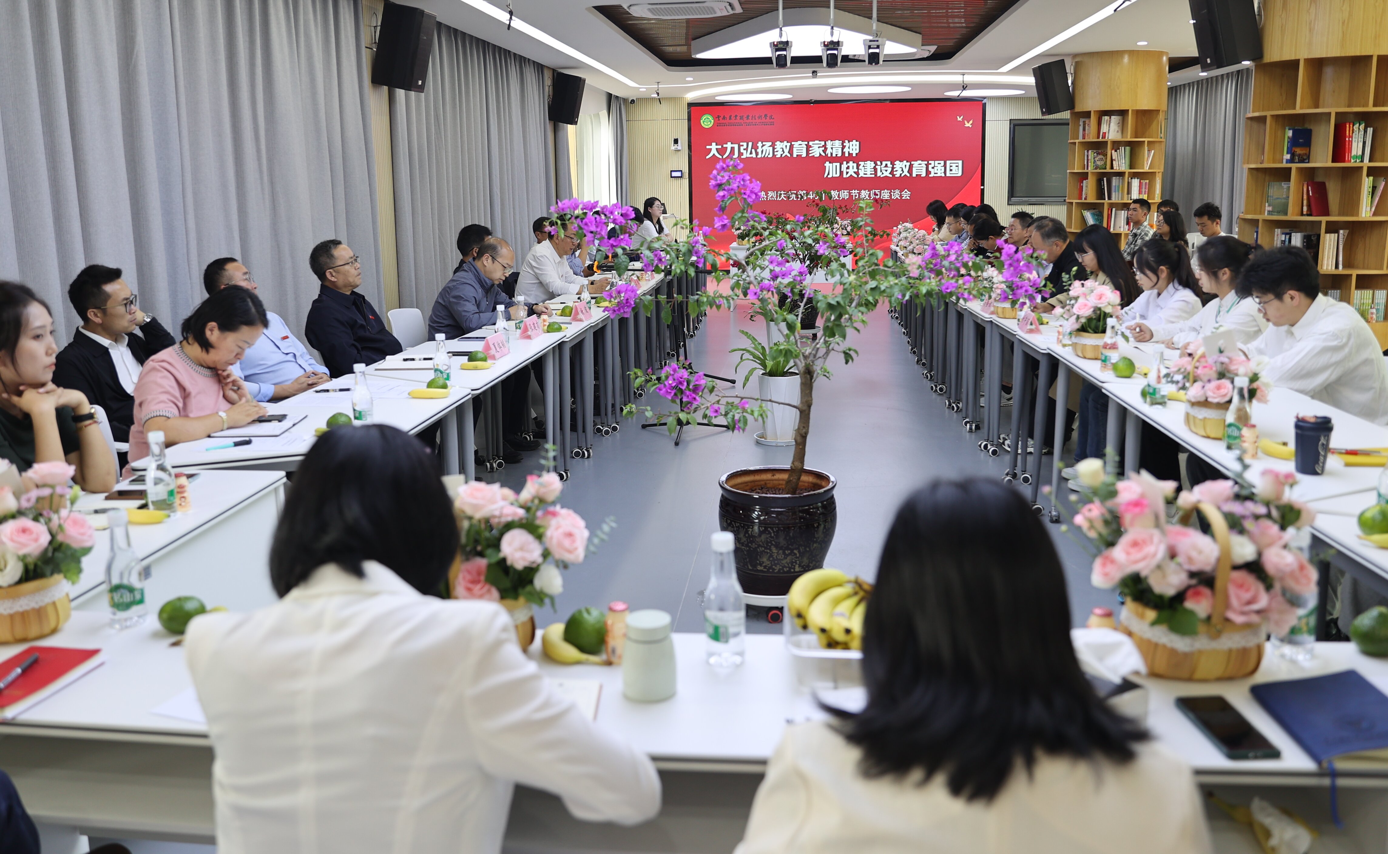 座谈会现场气氛热烈,与会人员观看了best365中国官方网站庆祝第40个教师节主题宣传片《师恩如光 照亮农职未来》。