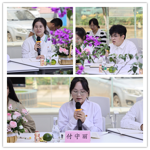 马克思主义学院教师马静娜作重点交流发言,她代表思政课教师对学校的培养与关心表示感谢,表示将在接下来的教育教学工作中坚持知行合一,用好用活学校思政课教学资源,积极开展教学创新,努力打造有深度、有温度、有力度的思政课堂。