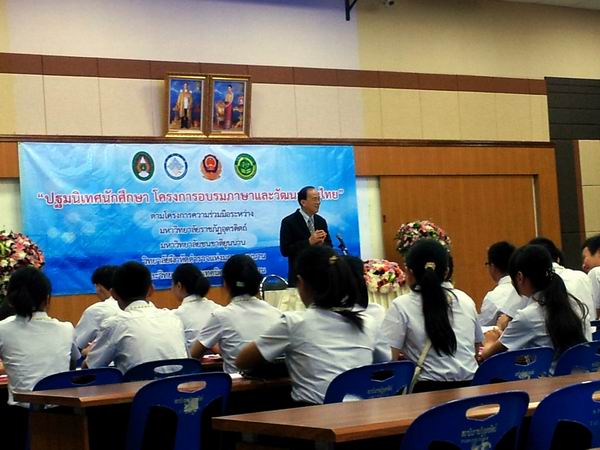 泰国两所合作学校对同学们的到来表示了热烈的欢迎,并为所有入学新生举行了隆重的开学典礼。典礼上,泰国学校的主要领导及相关教师就学校概况、课程设置、教学要求、学生管理以及在泰国留学期间的一些注意事项等向同学们进行了详细的介绍,希望同学们珍惜难得的留学机会,充分利用好双方学校为同学们创造的语言学习环境,争取在专业学习上取得较大的突破。此外,校方还以奖学金等形式激励同学们一年后继续升学深造,取的更高的学历和成就。