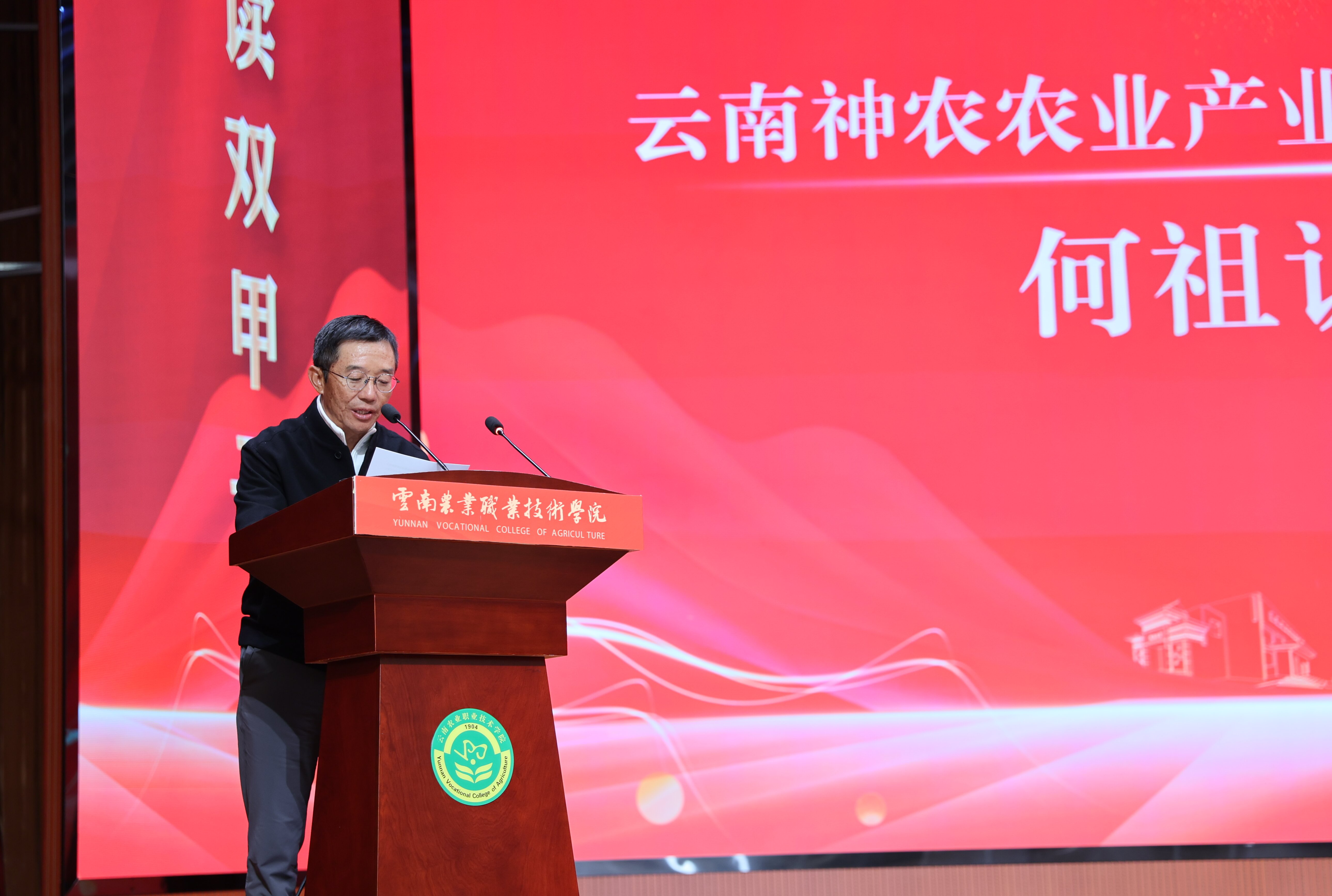 合作企业代表、云南神农农业产业集团有限责任公司董事长何祖训在致辞中表示,感谢学校长期以来为神农集团输送专业人才、支持集团发展。未来,神农集团将坚持稳健、可持续高质量发展,强化校企深度合作,不断谱写校企合作新篇章。
