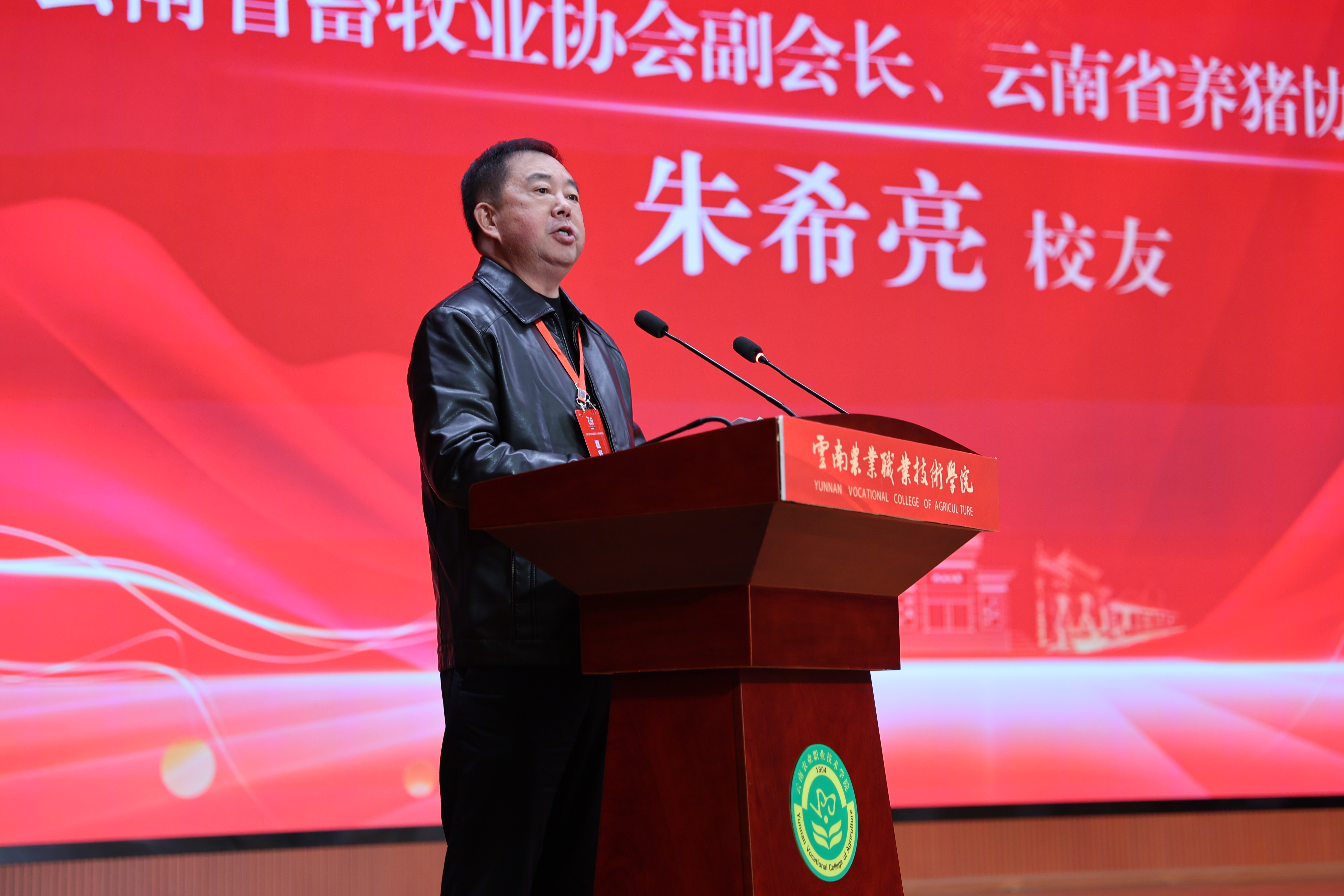 校友代表、云南省畜牧业协会副会长、云南省养猪协会副会长朱希亮发言,他表示,母校永远是最珍贵的青春记忆,学校艰苦奋斗、实事求是的精神赋予我们勇敢、乐观的人生底色。对于学校取得的成就,作为校友倍感自豪。祝愿母校明天更美好,再创辉煌、再展宏图!