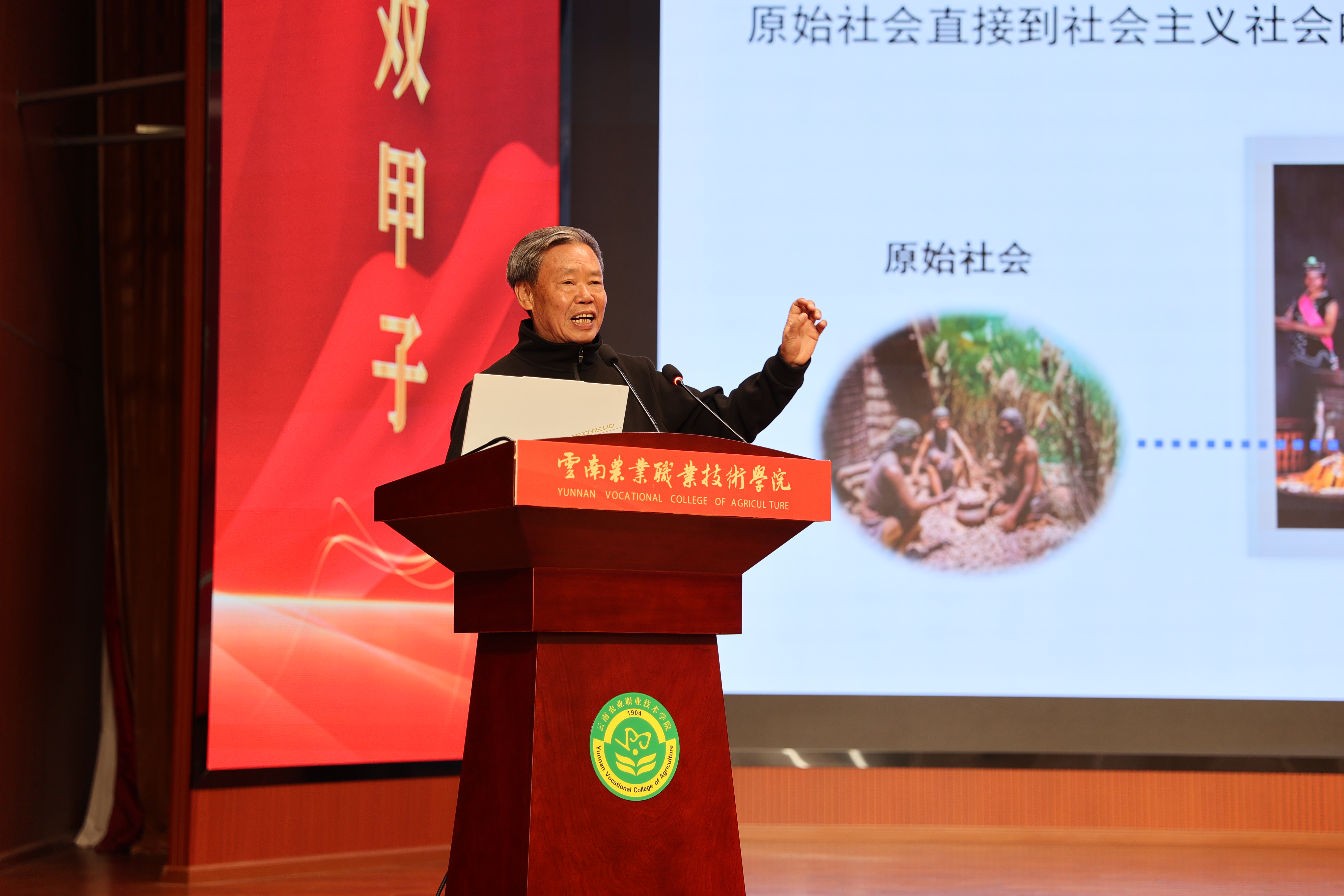 学校党委副书记、校长陈太安作学校百廿事业发展报告。报告全面展现了学校深化农业相关学科建设,紧跟农业科技前沿,积极探索新农科发展路径,培养知农爱农新型人才昂扬奋斗的生动实践。报告指出,展望未来,学校将始终胸怀“国之大者”,以立德树人为根本,以强农兴农为己任,锚定高水平农业职业技术大学的建设目标,建设“我国西南边疆民族地区乡村产业振兴人才培养高地、高原特色农业应用技术的研发推广基地、面向南亚东南亚高质量农业职业教育示范辐射中心”。
