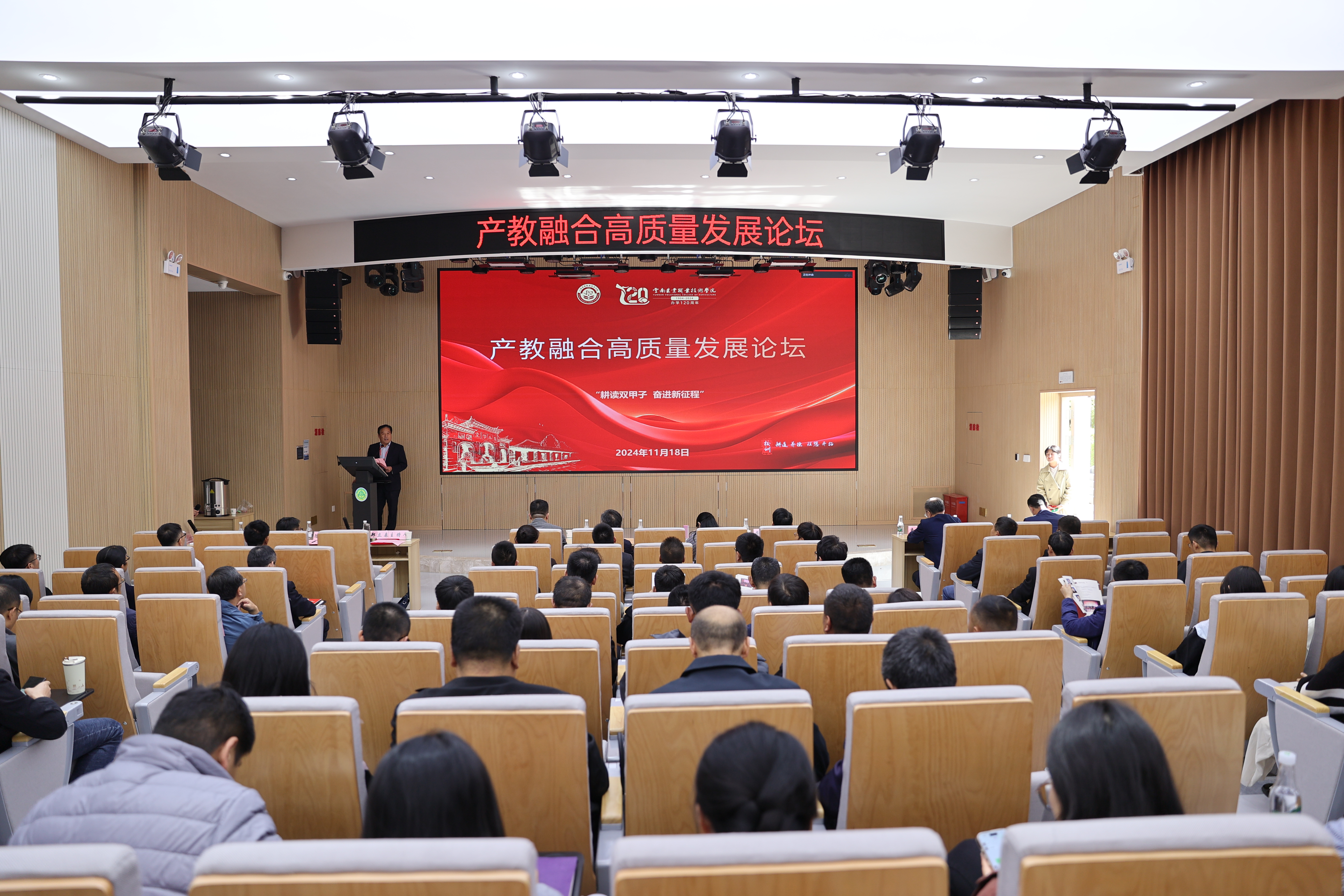 会议特邀江苏农林职业技术学院校长潘永圣、江苏农牧科技职业学院校长朱善元、江苏食品药品职业技术学院校长翟玮玮、广东农工商职业技术学院校长李作为、云南省农业科学院副院长龚加顺、学校“银龄计划”特聘教授束剑华等六位专家围绕论坛主题:“融通 融合 融汇——加快构建云南高素质技术技能型农业人才培养新格局”作专题报告,以学习借鉴国家级“双高计划”建设单位先进经验,深入开展产教融合,校企合作,更好地服务西南地区社会经济发展和产业转型升级需求。