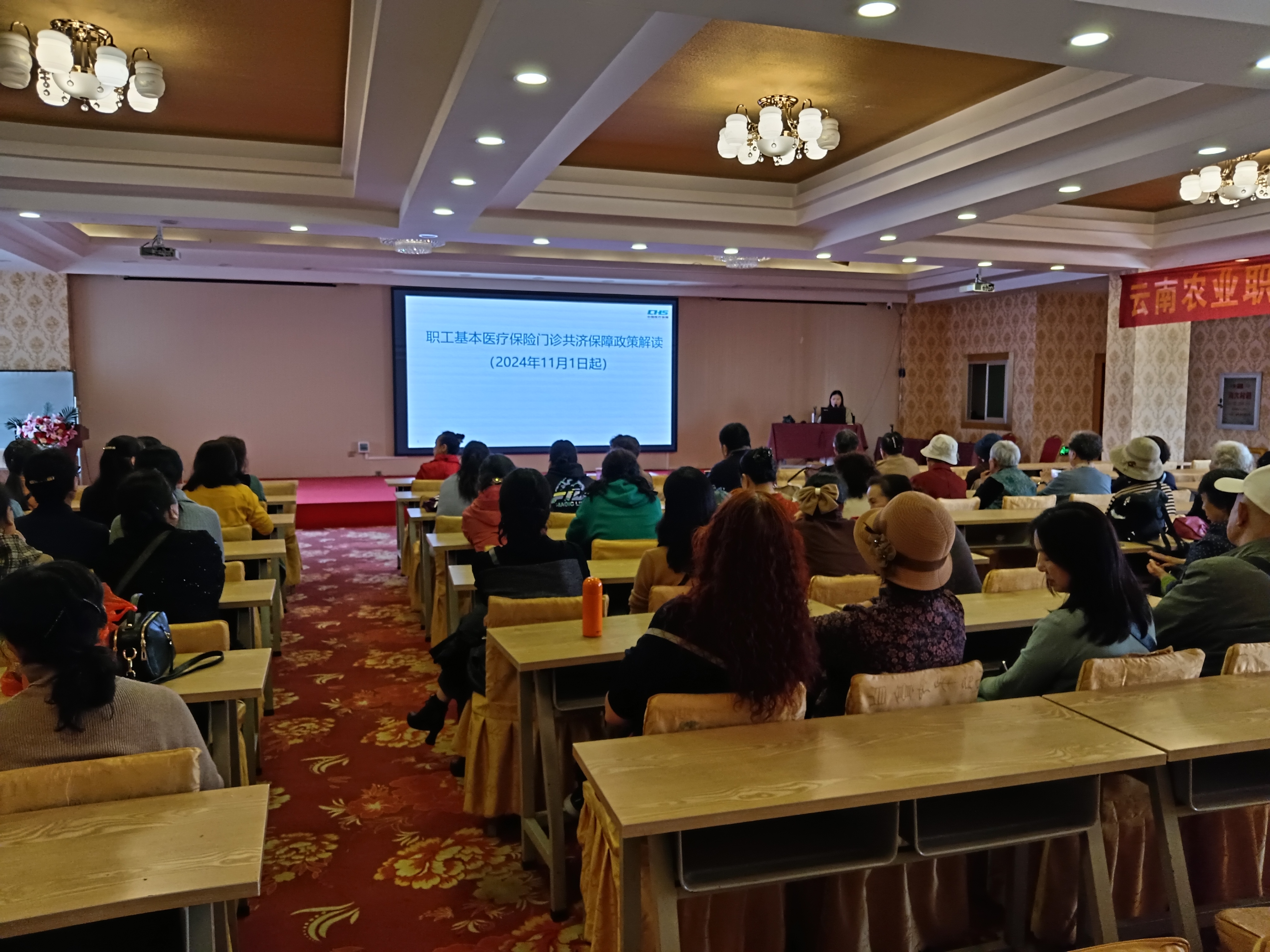 为使离退休老同志们更好了解职工医保参保最新政策,切实减轻其医疗费用负担,邀请了学校人事处毛文琪同志为离退休老同志们分别在小哨校区耕牧礼堂、茭菱校区农职培训中心报告厅组织开展职工医保参保相关政策宣讲活动,全面解读了云南省人民政府办公厅9月颁布,2024年11月1日起施行的《云南省职工基本医疗保险门诊共济保障实施办法》。