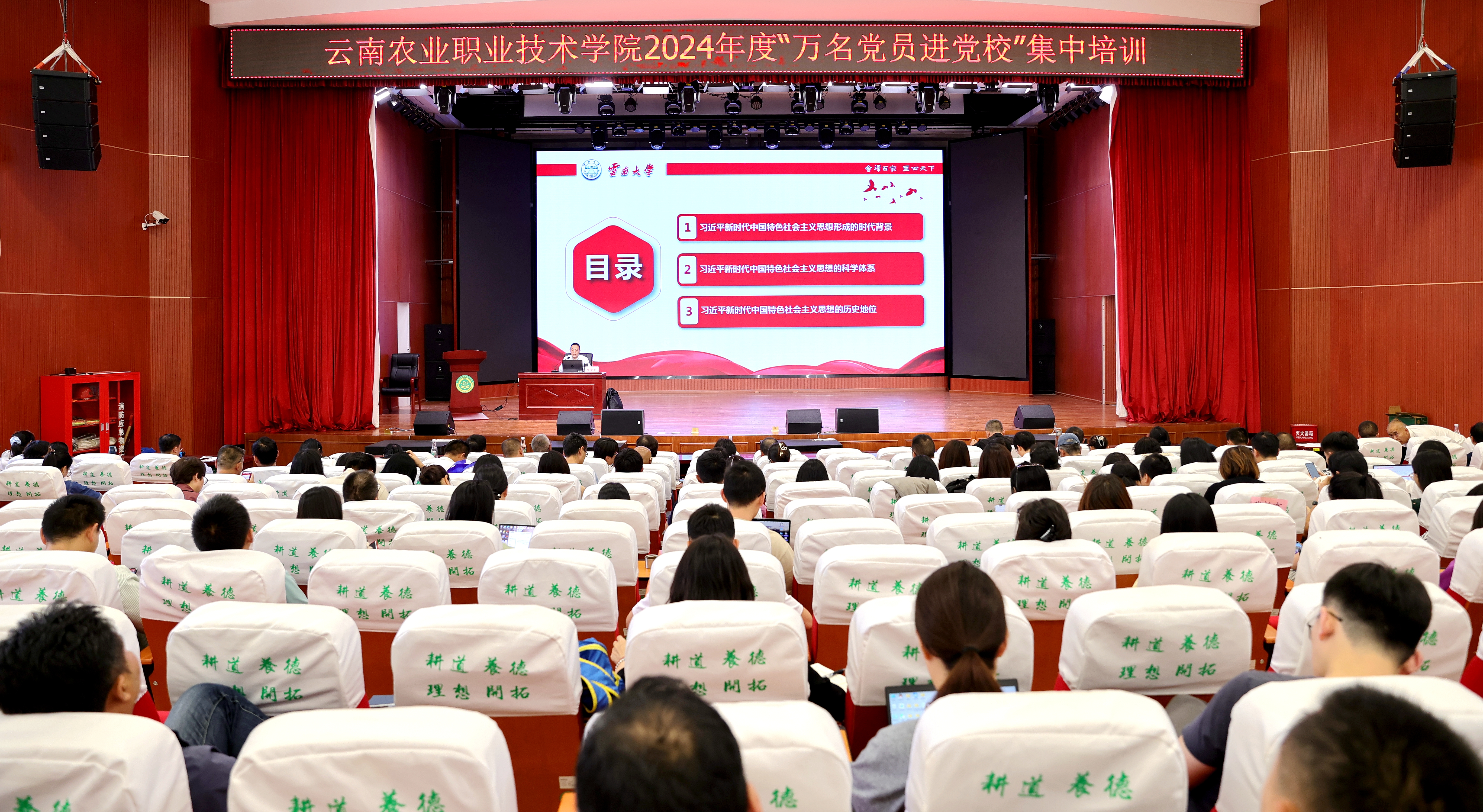 7月8日,培训班开班动员在学院小哨校区蚕桑礼堂举行,学院党委书记、党校校长文俊同志带领全体党员重温入党誓词,并作开班动员讲话。云南农业大学职能部门党委常务副书记彭德远副教授、云南大学马克思主义学院李雪章副教授分别以《一流党建引领教育教学高质量发展》和《不断开辟马克思主义中国化时代化新境界》为主题,多方面交流分享了党建引领教育教学高质量发展的方法举措,多角度带领参训人员全面深入学习贯彻党的二十大精神。同时,依托“清风云南”以案说纪视频开展法律法规自学。
