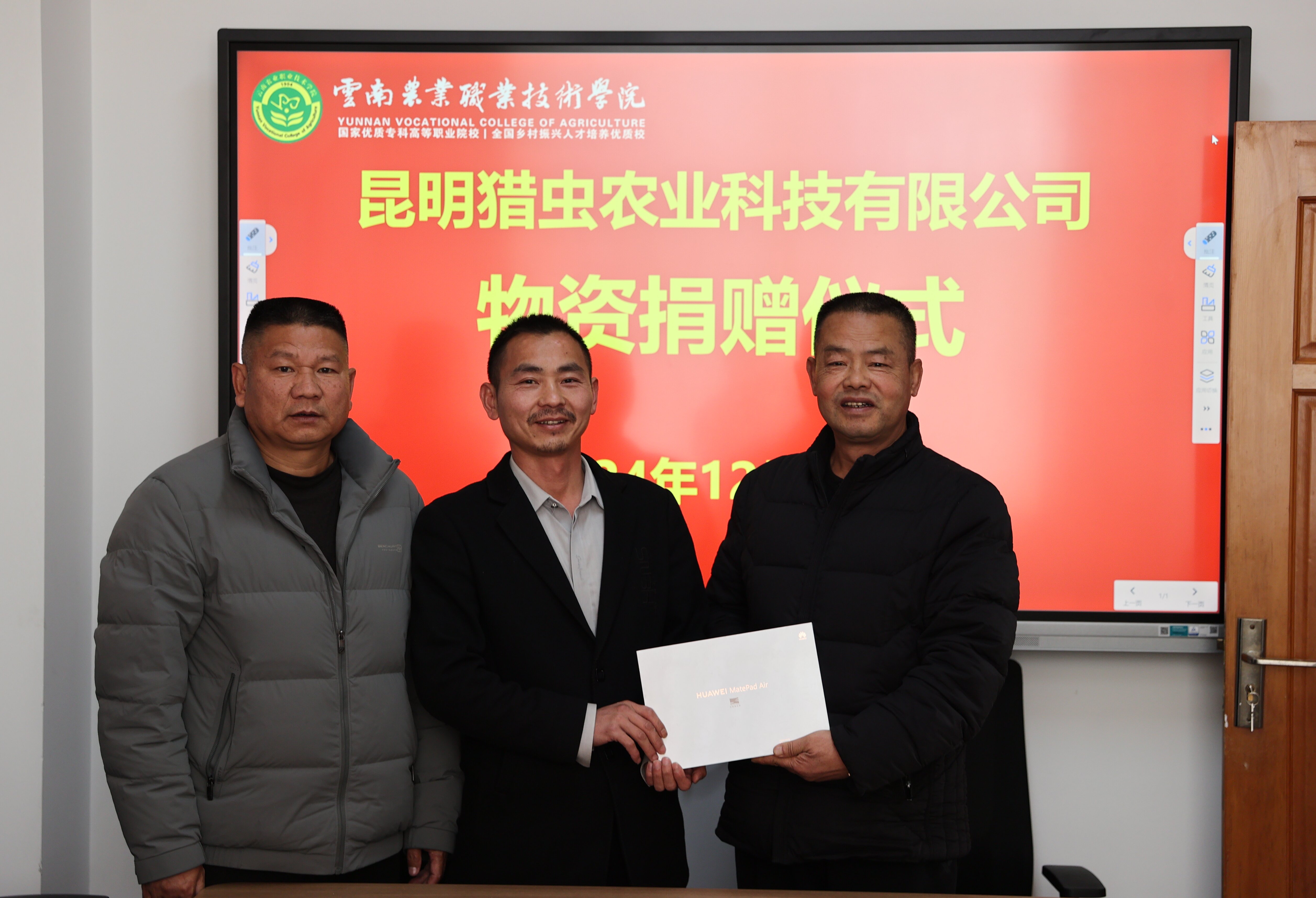 通知中心12月11日,昆明猎虫农业科技有限公司物资捐赠仪式在学校离退休人员服务办公室会议室举行。昆明猎虫农业科技有限公司董事长,云南猎森林业调查规划设计有限公司董事长、best3652001级农业技术推广专业校友张锐返回母校,向学校捐赠物资,体现校友温情,助力学校发展。张锐董事长及公司工作人员代表、学校办公室、实践教学中心、离退休人员服务办公室主要负责人出席捐赠仪式。