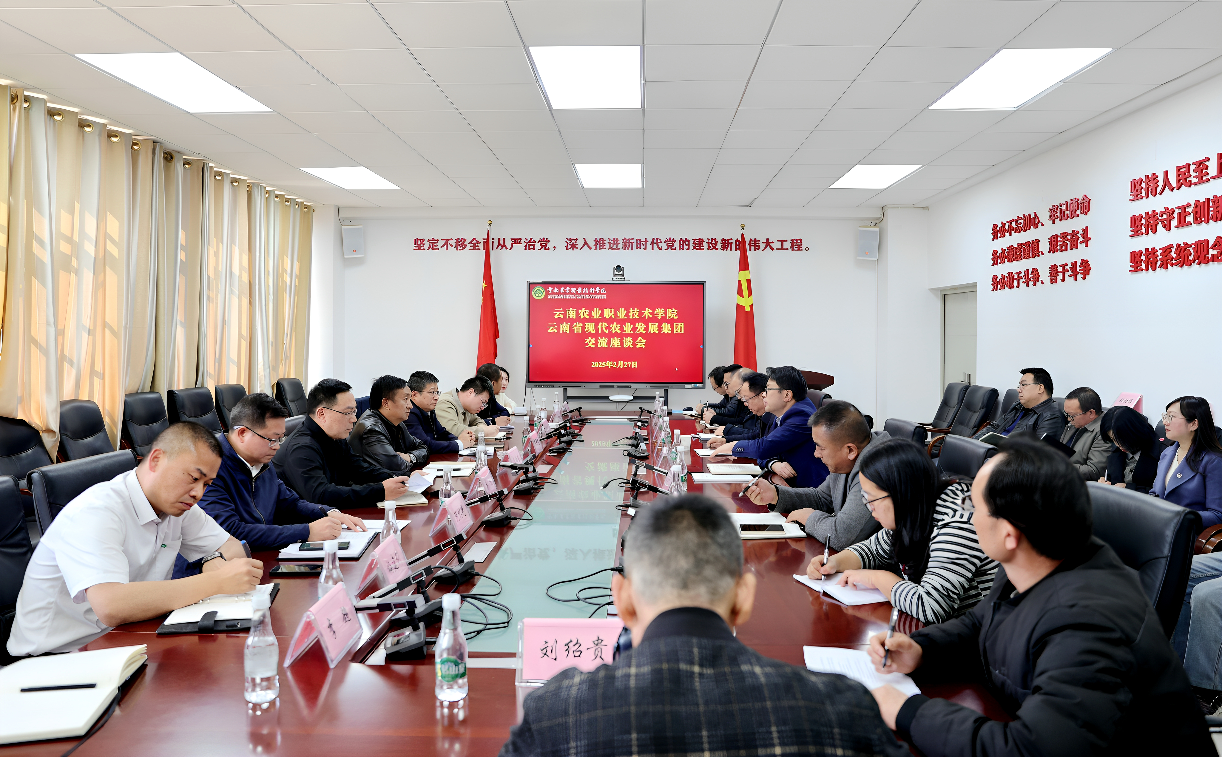 座谈会上,陈太安校长介绍学校的基本情况,就落实省委领导关于产教融合“三农三融”的要求,学校开展了高原特色农业产教融合共同体项目、“园中院”项目、“产教融合”示范园项目等相关工作,他表示,希望与省农发(农垦)集团在种植和养殖板块开展实质性合作,以推进产教融合项目落实落地。