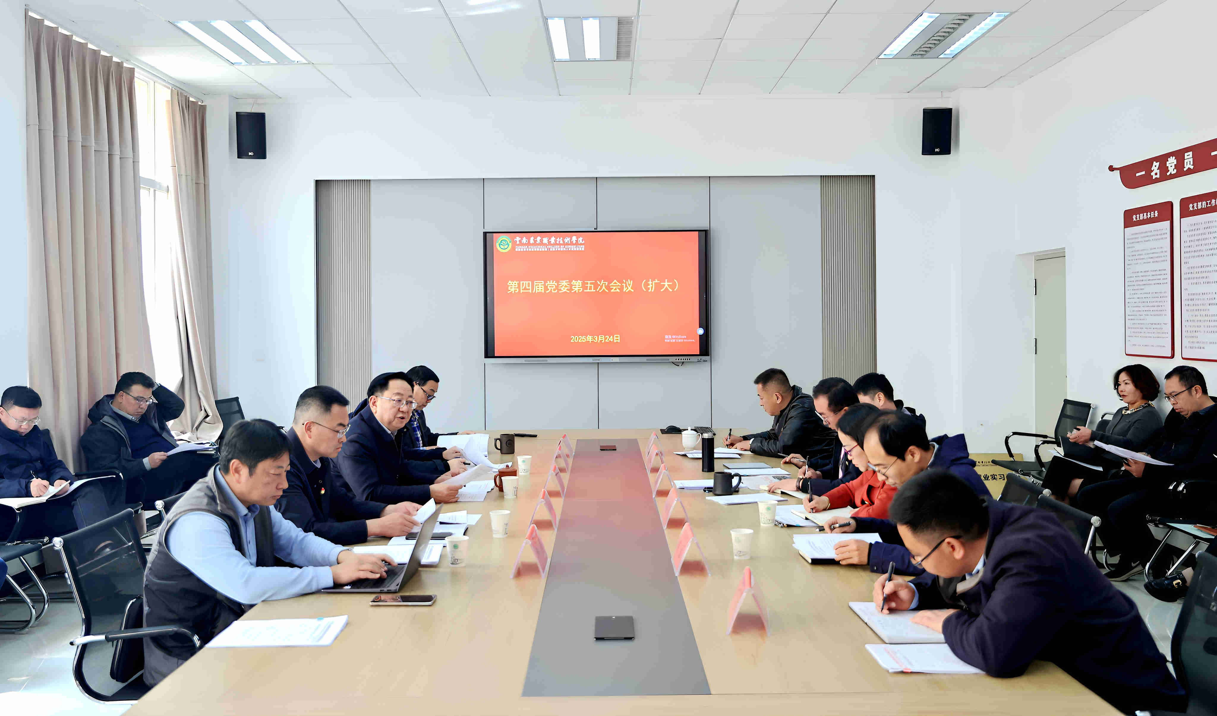 通知中心3月24日下午,学校召开党委第五次(扩大)会议,全面启动部署深入贯彻中央八项规定精神学习教育。学校党委书记文俊主持会议并讲话,全体党委委员,各党总支书记,纪检监察处、学生处(学生工作部、武装部)、教务处、财务处、人事处(教师工作部)、审计处、科技与对外合作交流处、后勤管理服务中心等部门主要负责人参加会议。